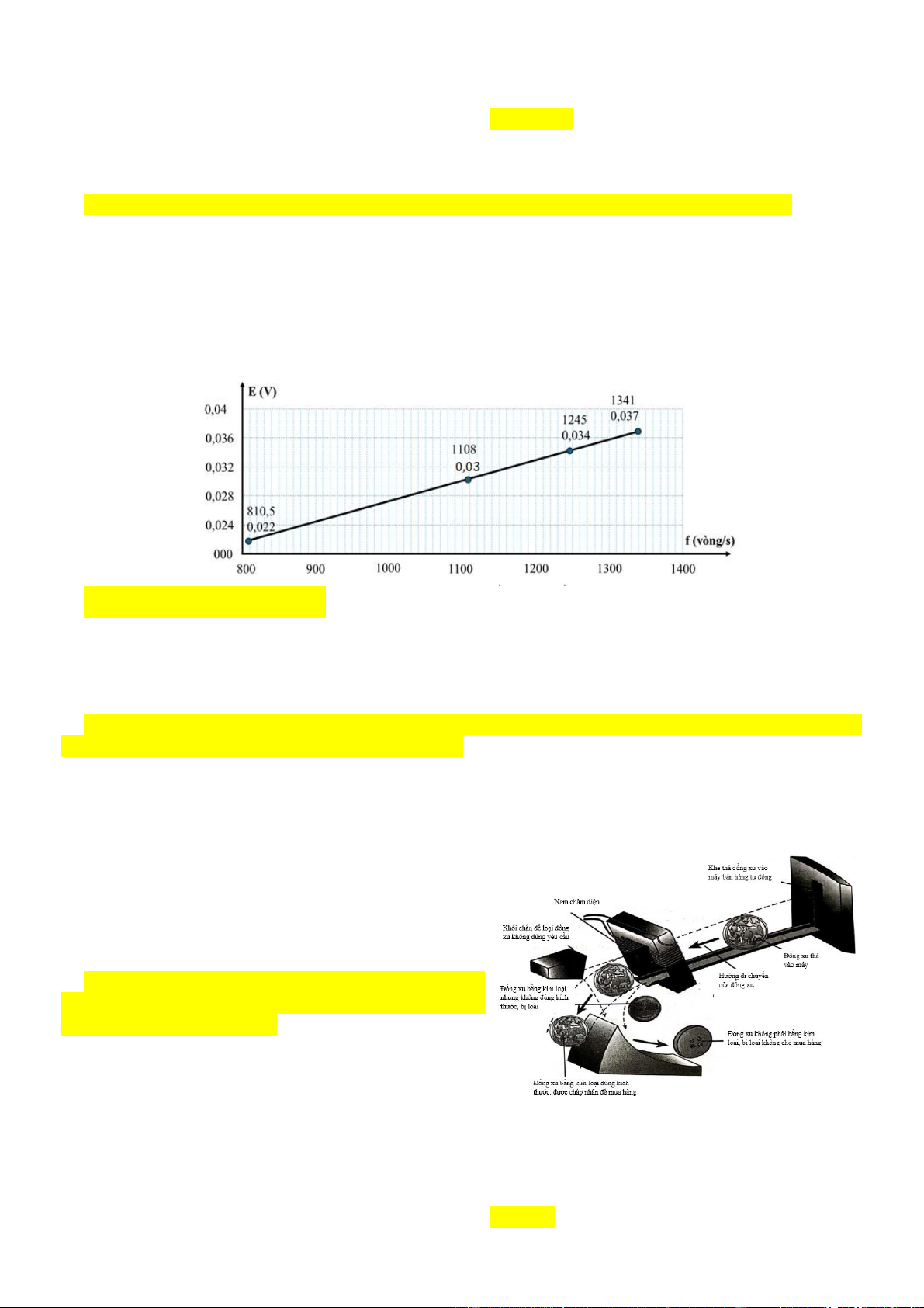 động E(V) , trục hoành là tần số quay của rôto theo đơn vị vòng/s (Hình vẽ). Biết khi rôto không quay thì