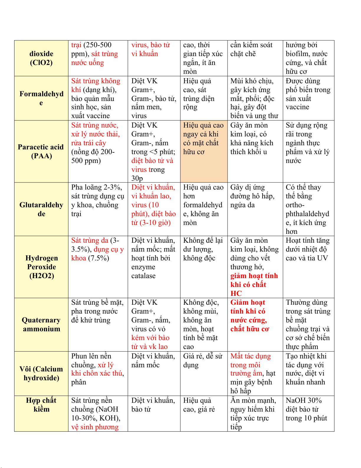 Diệt vi khuẩn, Hiệu quả Ăn mòn mạnh, NaOH 30% kiềm chuồng (NaOH bào tử cao, giá rẻ nguy hiểm khi diệt bào tử 10-30%, KOH), tiếp xúc trực trong 10 phút vệ sinh phương tiếp tiện vận chuyển Câu 1.