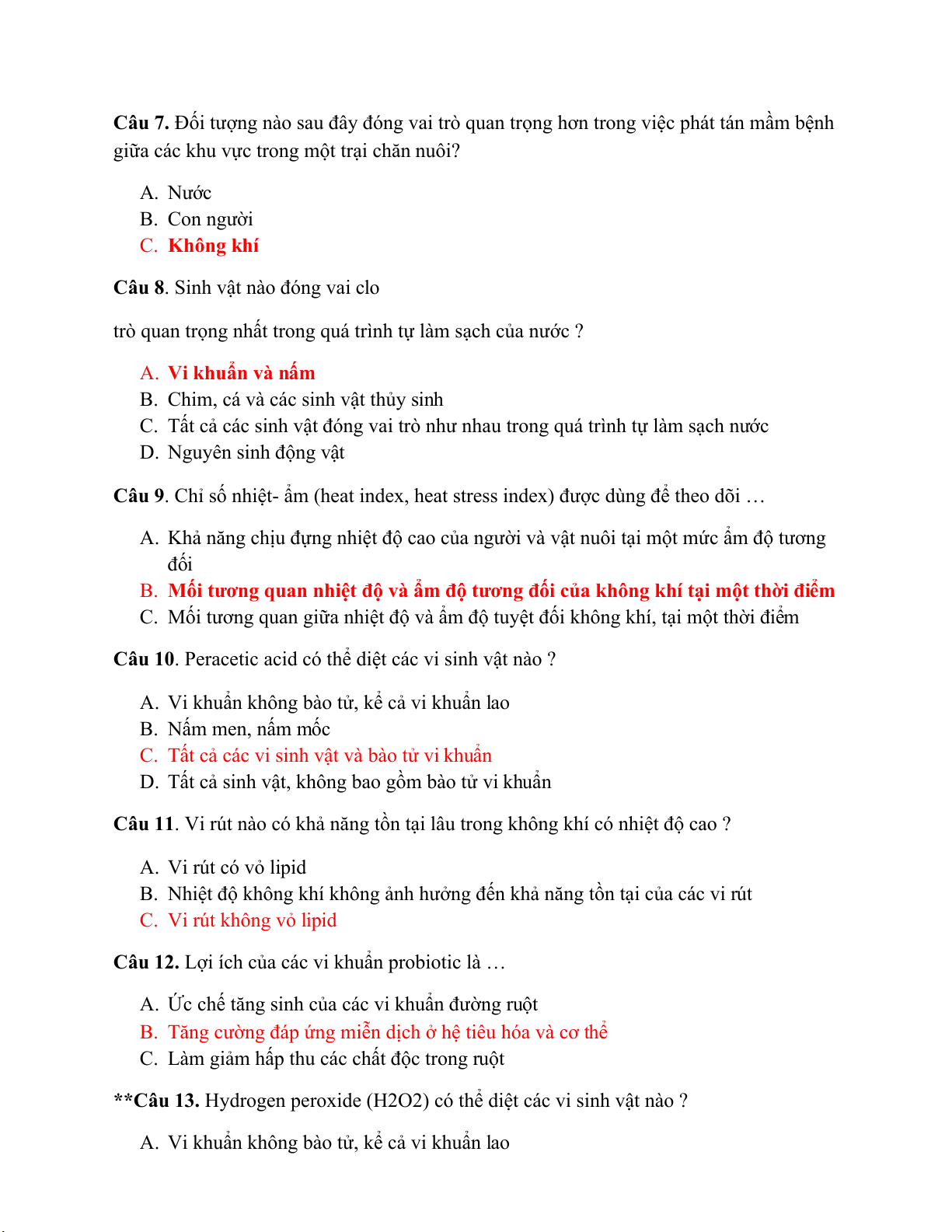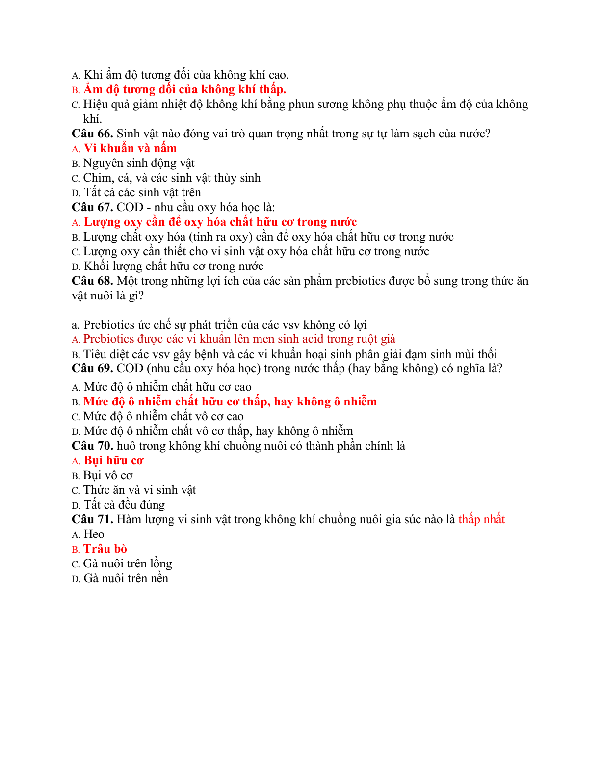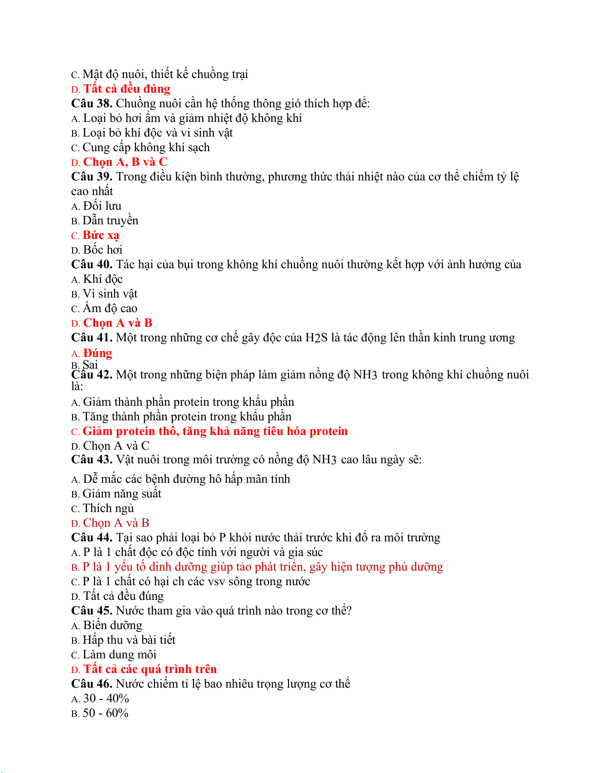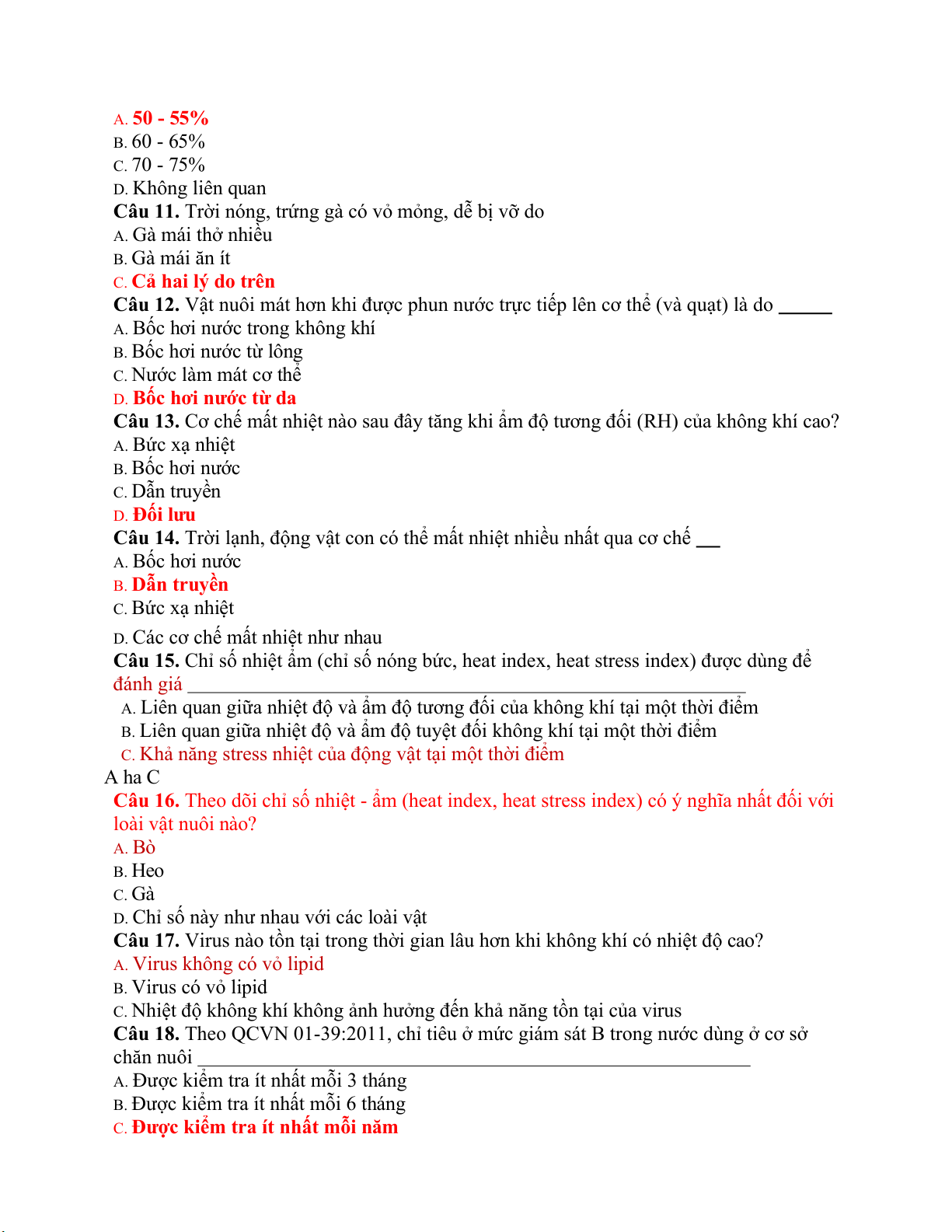 Câu 10. Trong chuồng kín, nên duy trì ẩm độ tương đối của không khí ở khoảng A. 50 - 55% B. 60 - 65% C. 70 - 75% D. Không liên quan