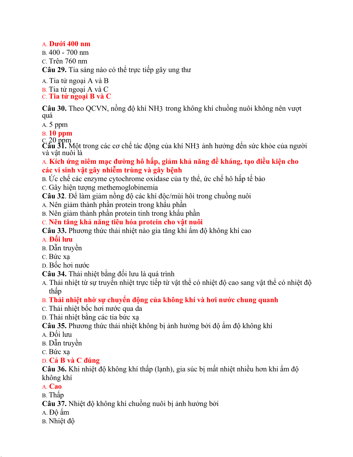 Câu 37. Cơ chế thải/ mất nhiệt nào sau đây không phụ thuộc ẩm độ tương đối (RH) của không khí ? A. Đối lưu B. Bốc hơi nước C. Bức xạ nhiệt