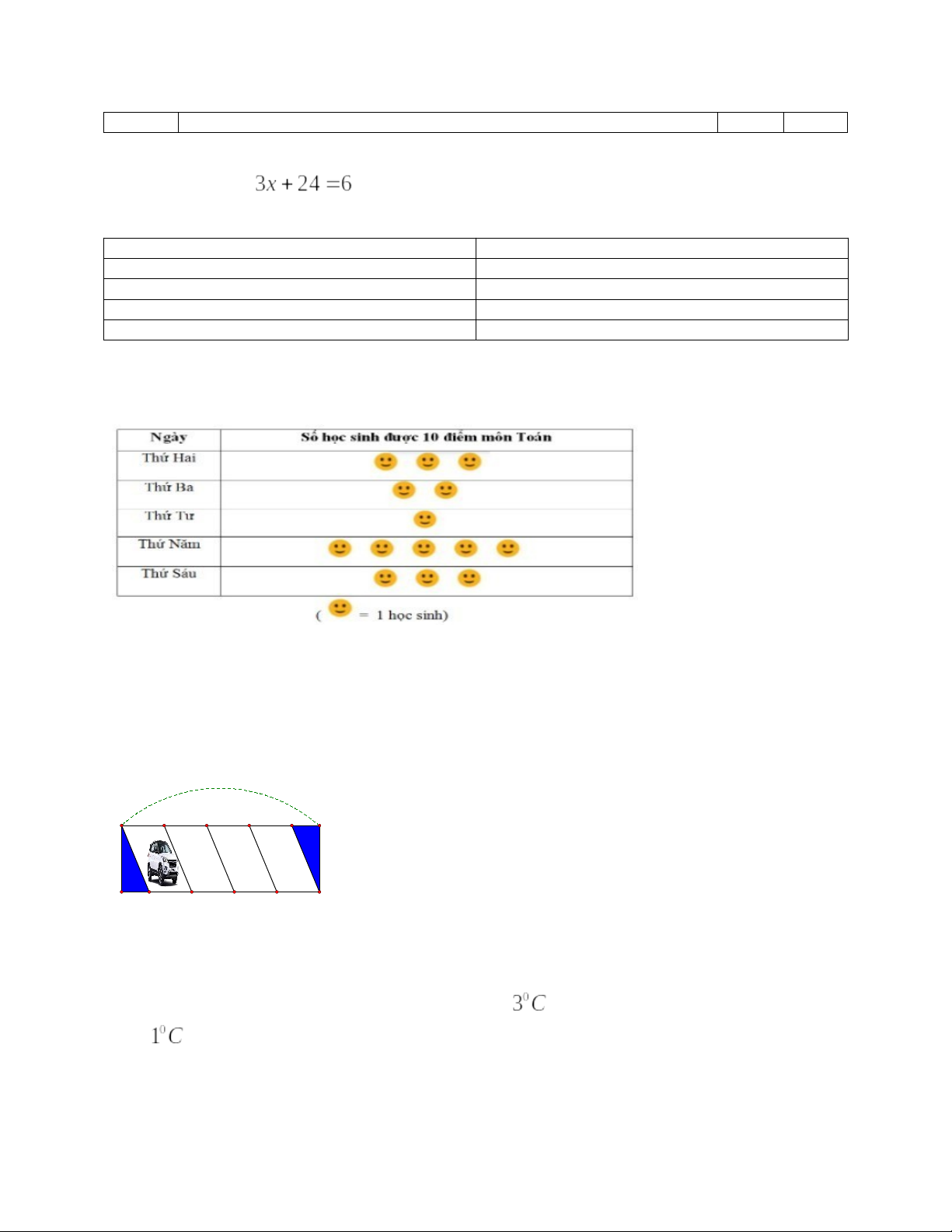 Bài 3: (1,0đ). Biểu đồ tranh dưới đây cho biết số học sinh đạt điểm 10 môn Toán trong một tuần: