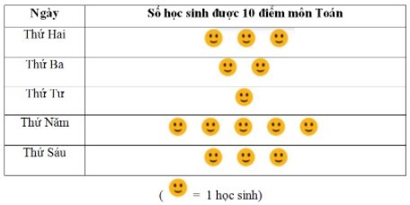 a. Từ biểu đồ tranh, hãy lập bảng thống kê tương ứng biểu diễn số học sinh đạt điểm 10 môn Toán trong một tuần.