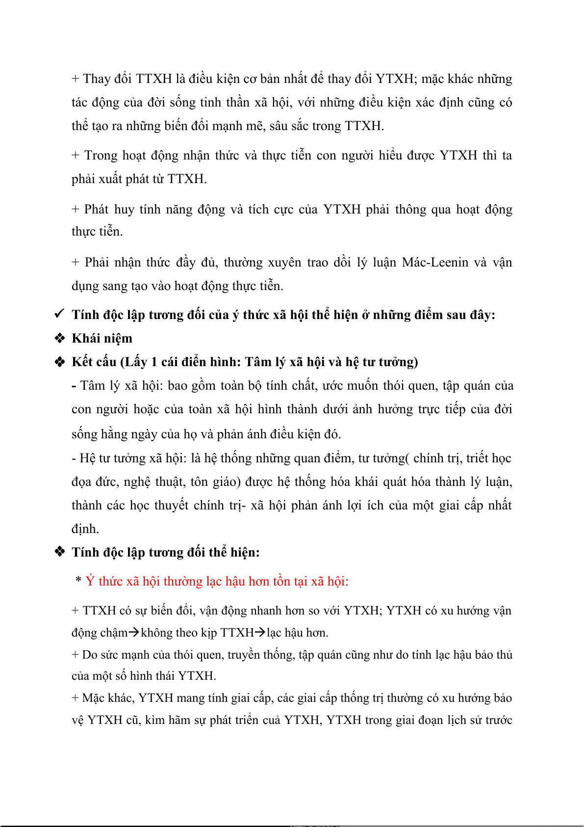 + Thay đổi TTXH là điều kiện cơ bản nhất để thay đổi YTXH; mặc khác những