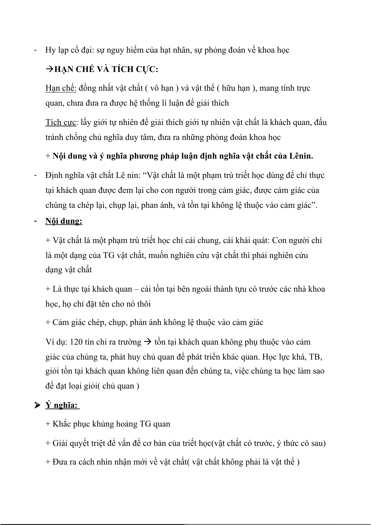 + Nội dung và ý nghĩa phương pháp luận định nghĩa vật chất của Lênin.