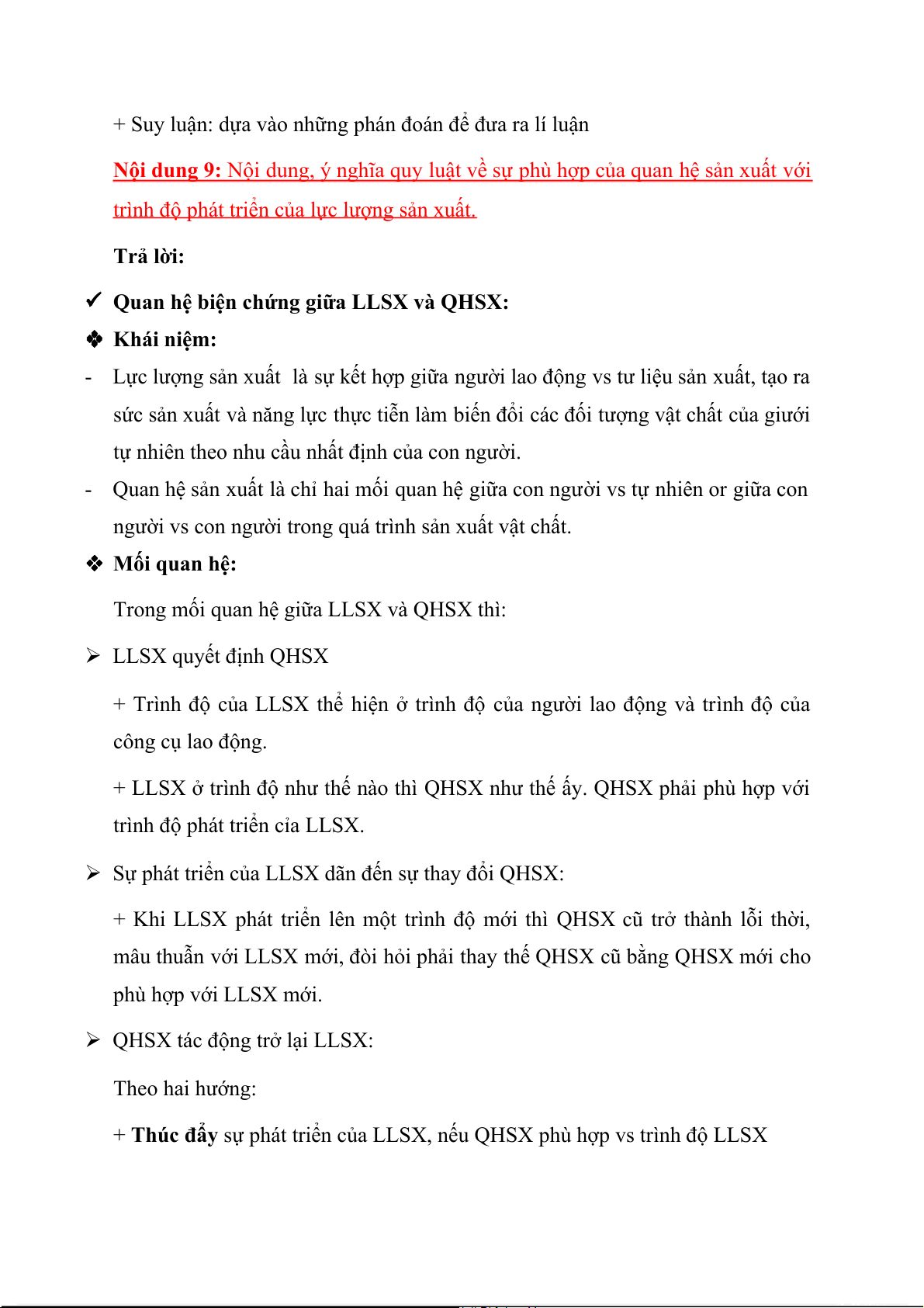 + Thúc đẩy sự phát triển của LLSX, nếu QHSX phù hợp vs trình độ LLSX