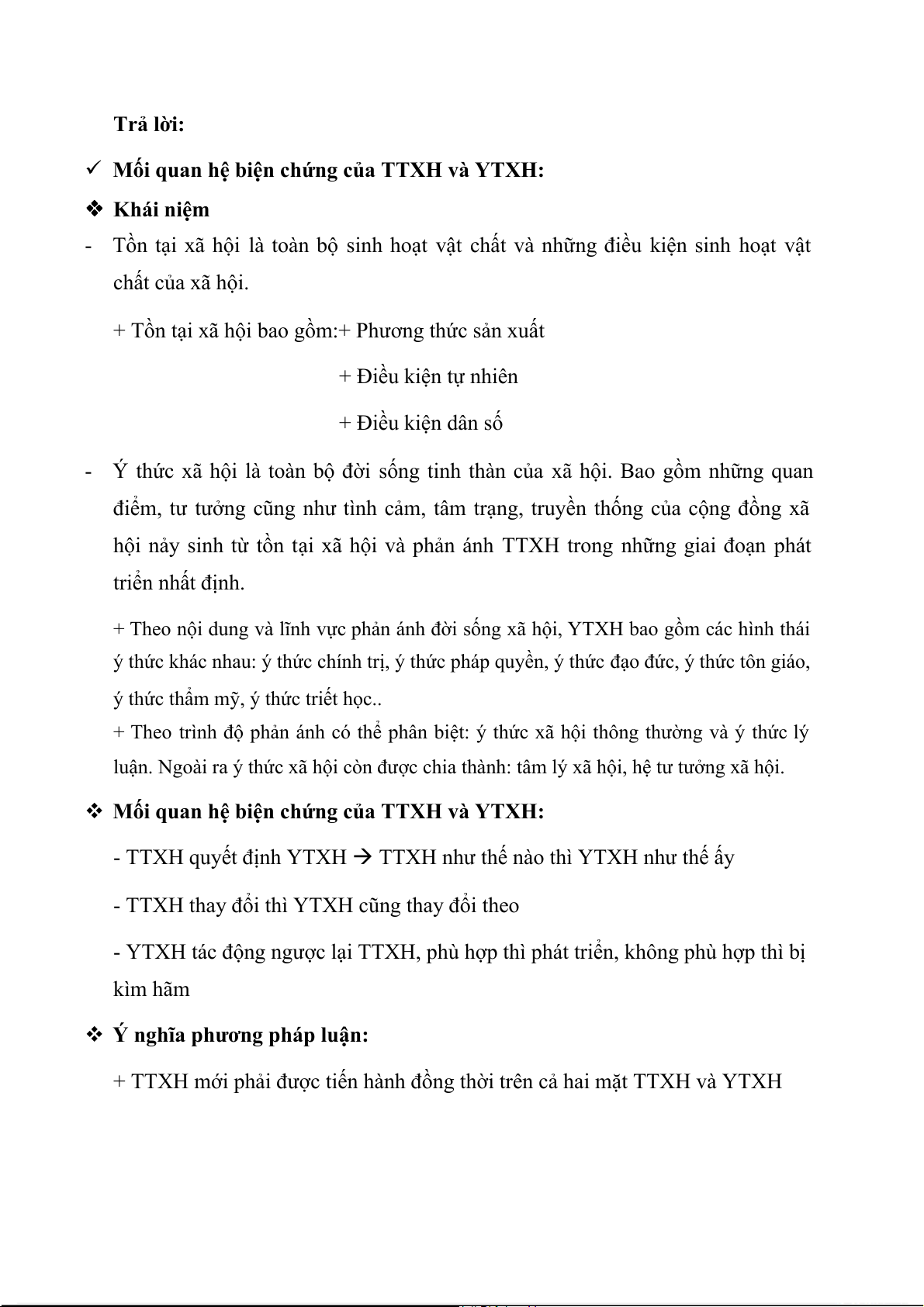 + Tồn tại xã hội bao gồm:+ Phương thức sản xuất + Điều kiện tự nhiên + Điều kiện dân số