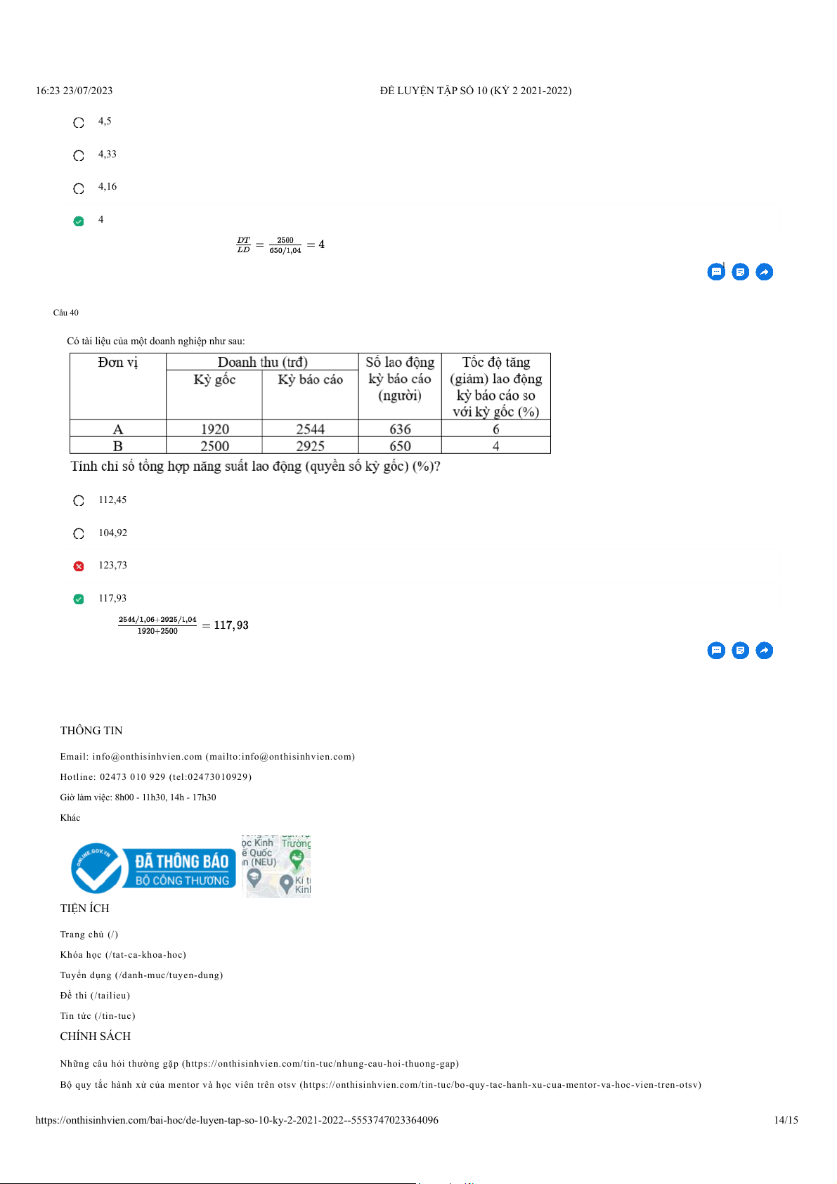 Giải thích: NSLĐ của đơn vị B kỳ gốc = 1 Câu 40