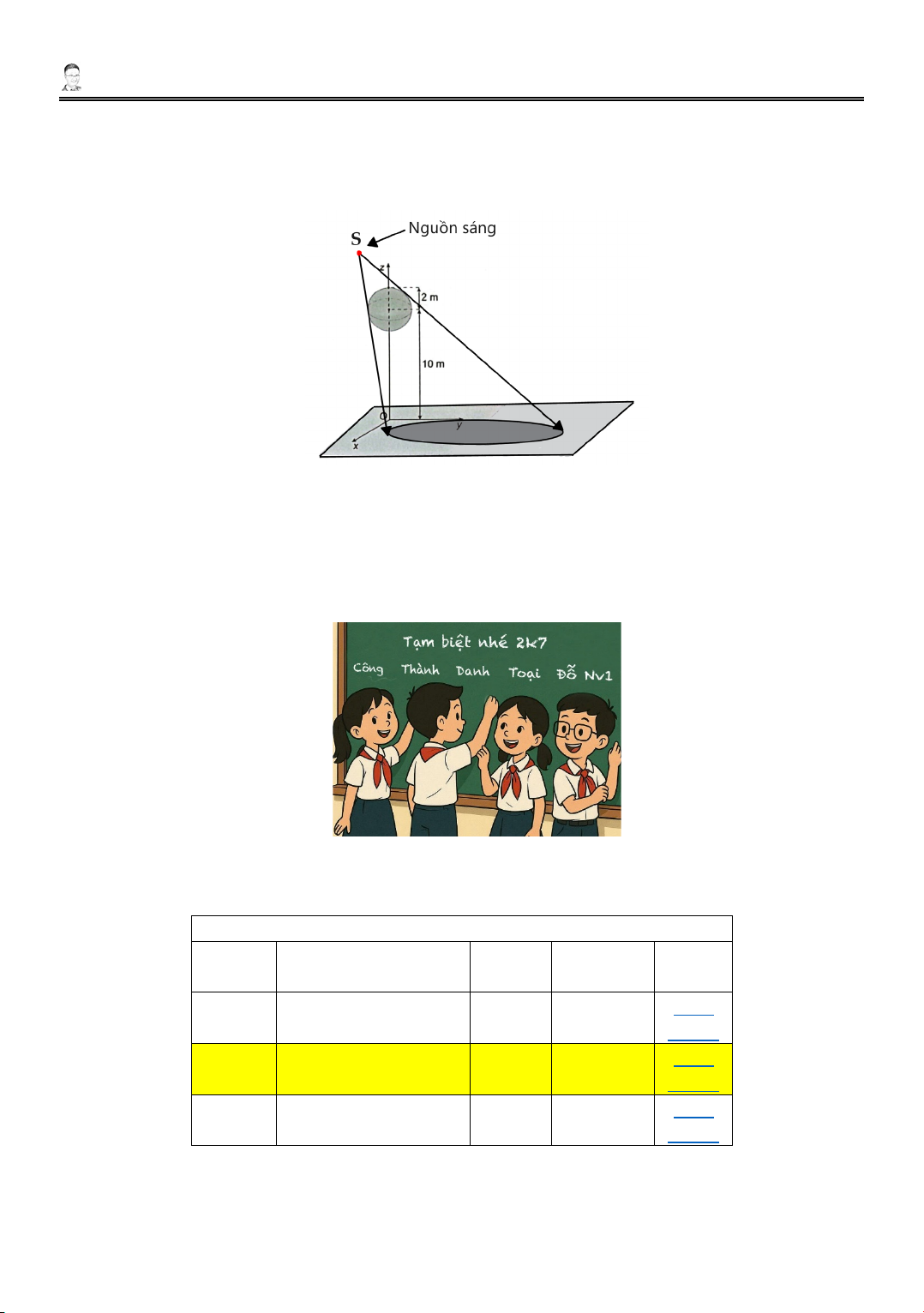 Một nguồn sáng 𝑆𝑆(2; −1; 15) chiếu xuống quả cầu, bóng của quả cầu xuống mặt đất là vùng