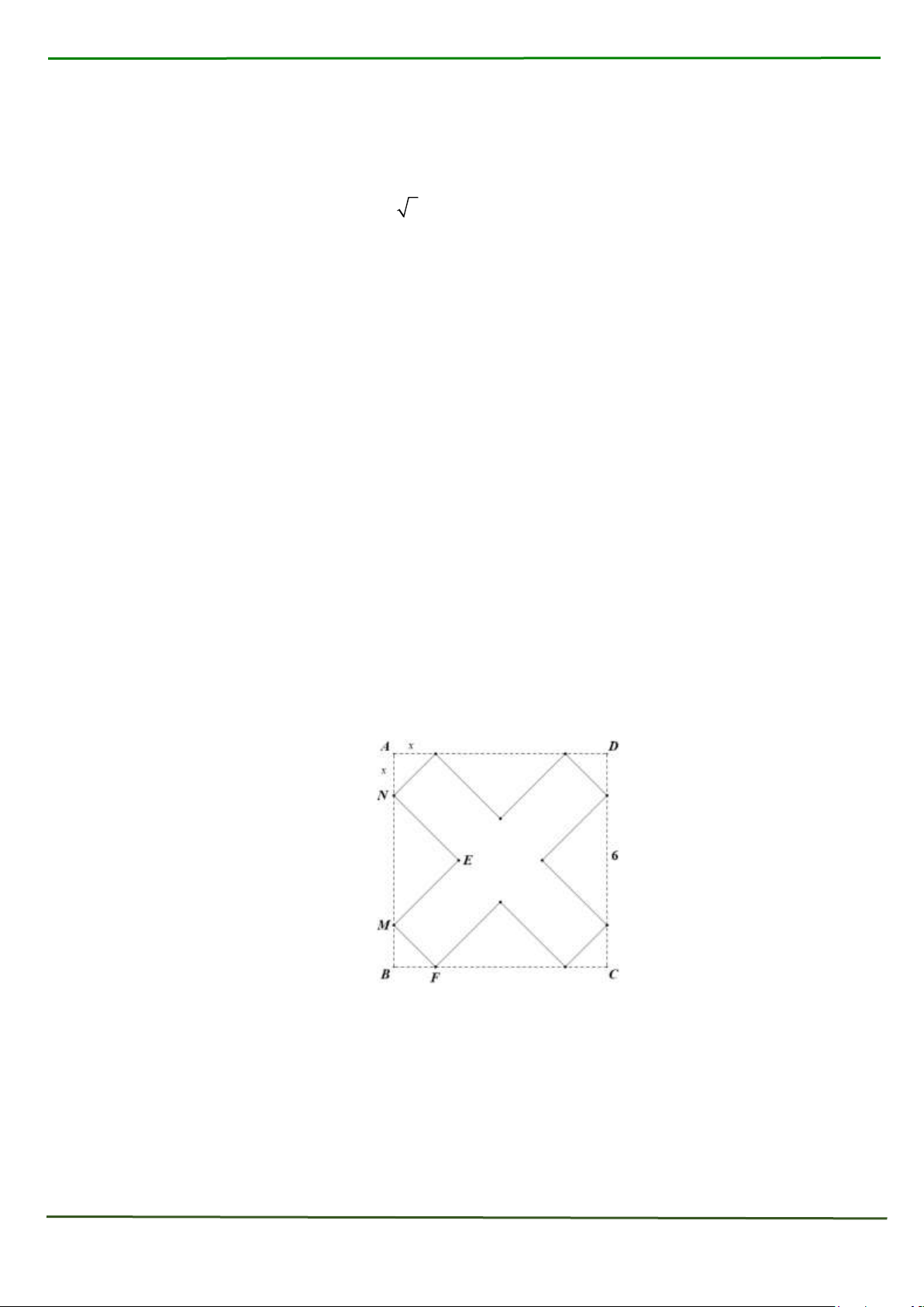 Từ hình vuông có cạnh bằng 6 bạn An cắt bỏ các tam giác vuông cân tạo thành hình chữ