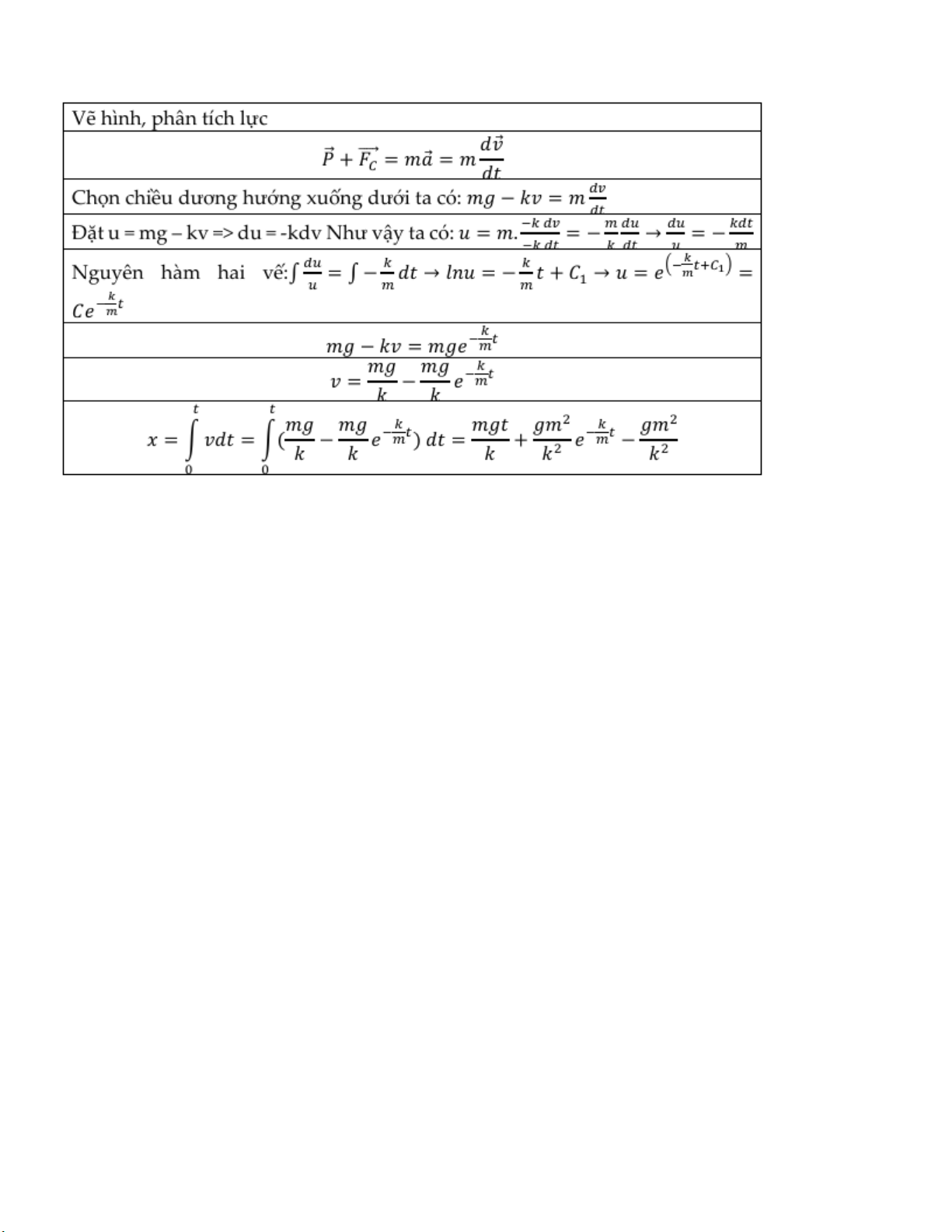 không khí, biết rằng lực cản tỷ lệ với vận tốc của vật rơi. 10