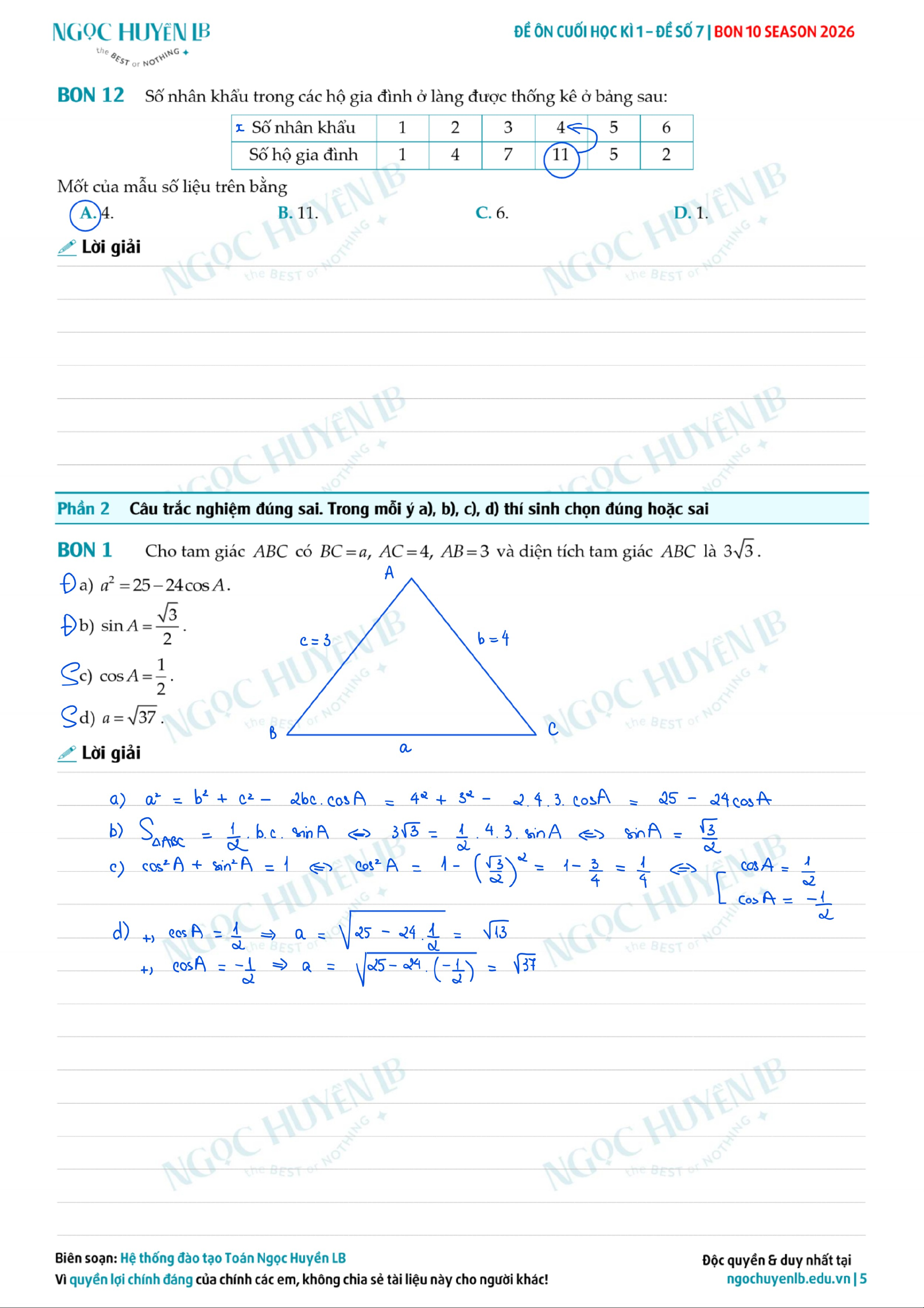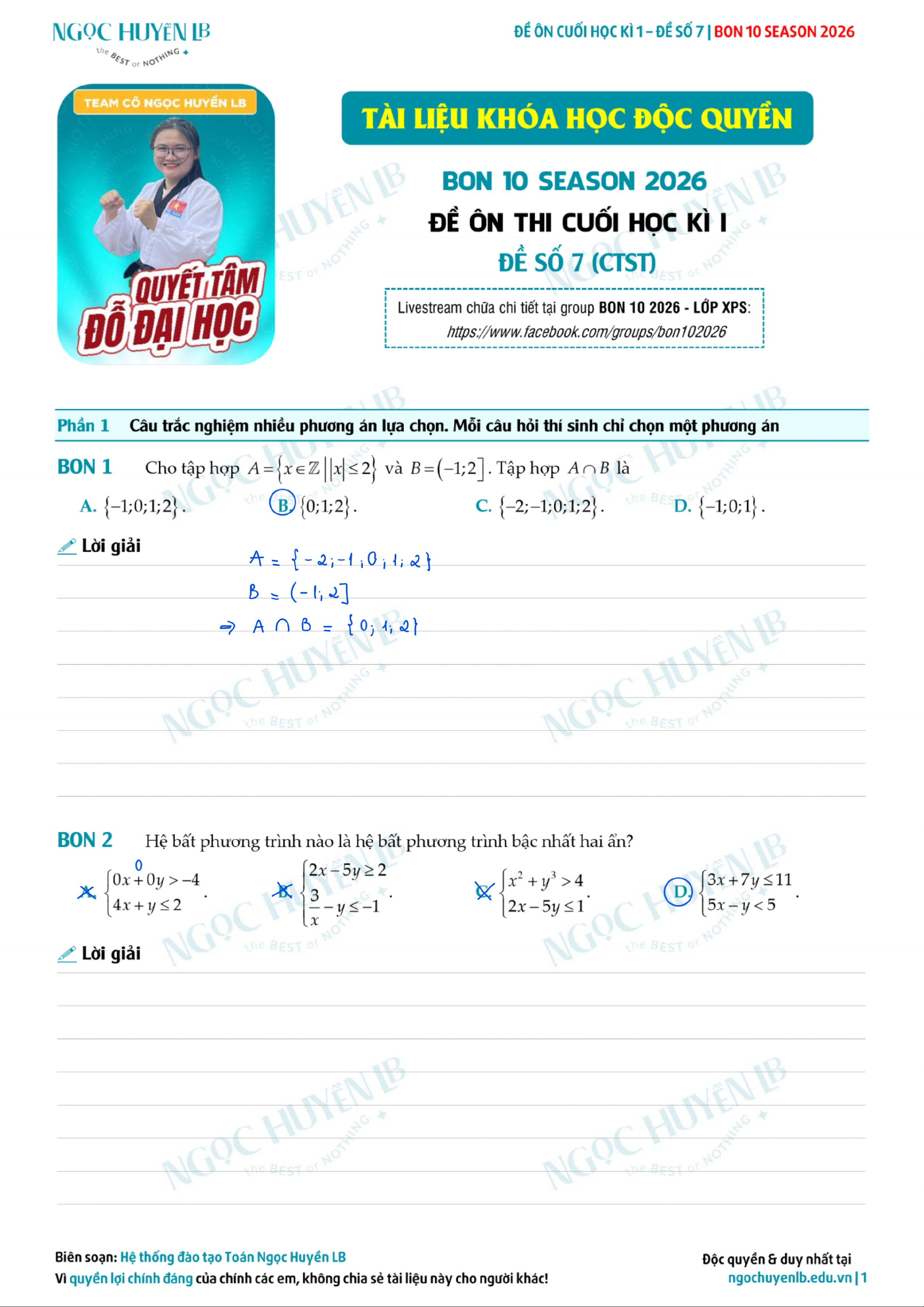 Đề ôn thi cuối học kì 1 lớp 10 - đề số 7