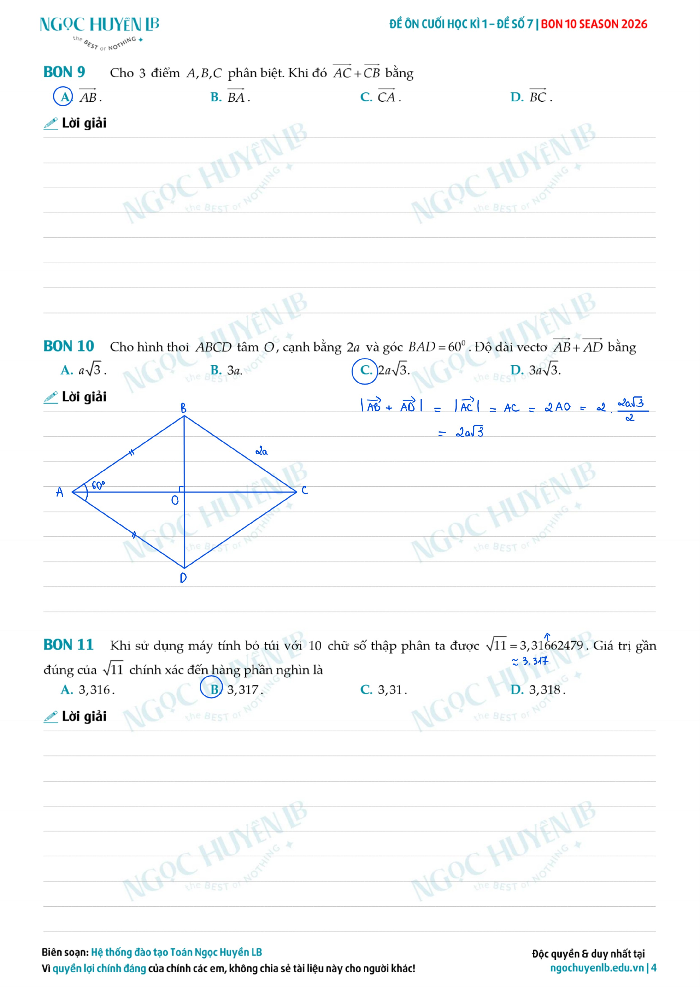Đề ôn thi cuối học kì 1 lớp 10 - đề số 7. Tài liệu giúp bạn tham khảo, ôn tập và đạt kết quả cao. Mời đọc đón xem!