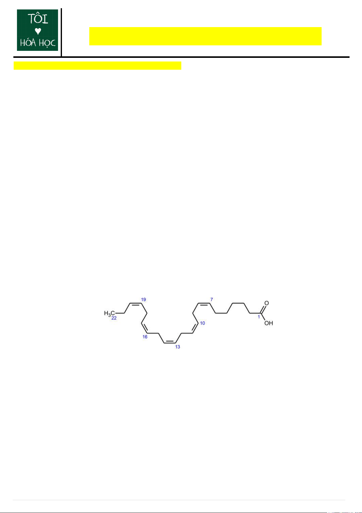 Câu 6: Công thức khung phân tử của docosapentaenoic acid (DPA) như sau: Vậy DPA là A. chất béo.