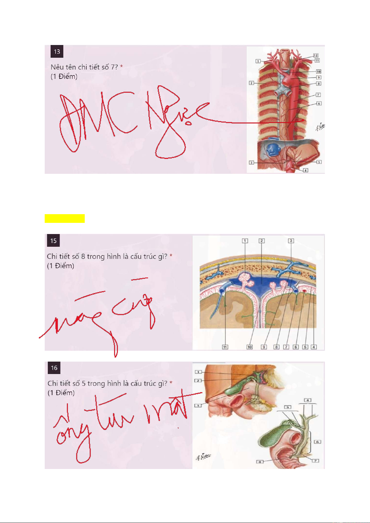 Câu 14: Mạch máu nào của phổi tham gia vào chức năng trao đổi khí: A. Động mạch phổi B. Tĩnh mạch phổi C. Động mạch phế quản D. A, B đúng Câu 15: Atlas 113 Câu 16: Atlas 287