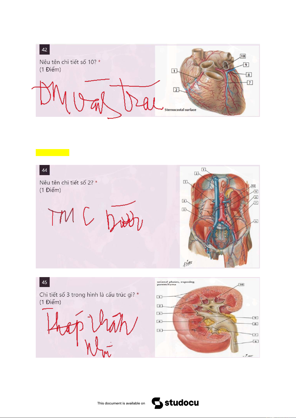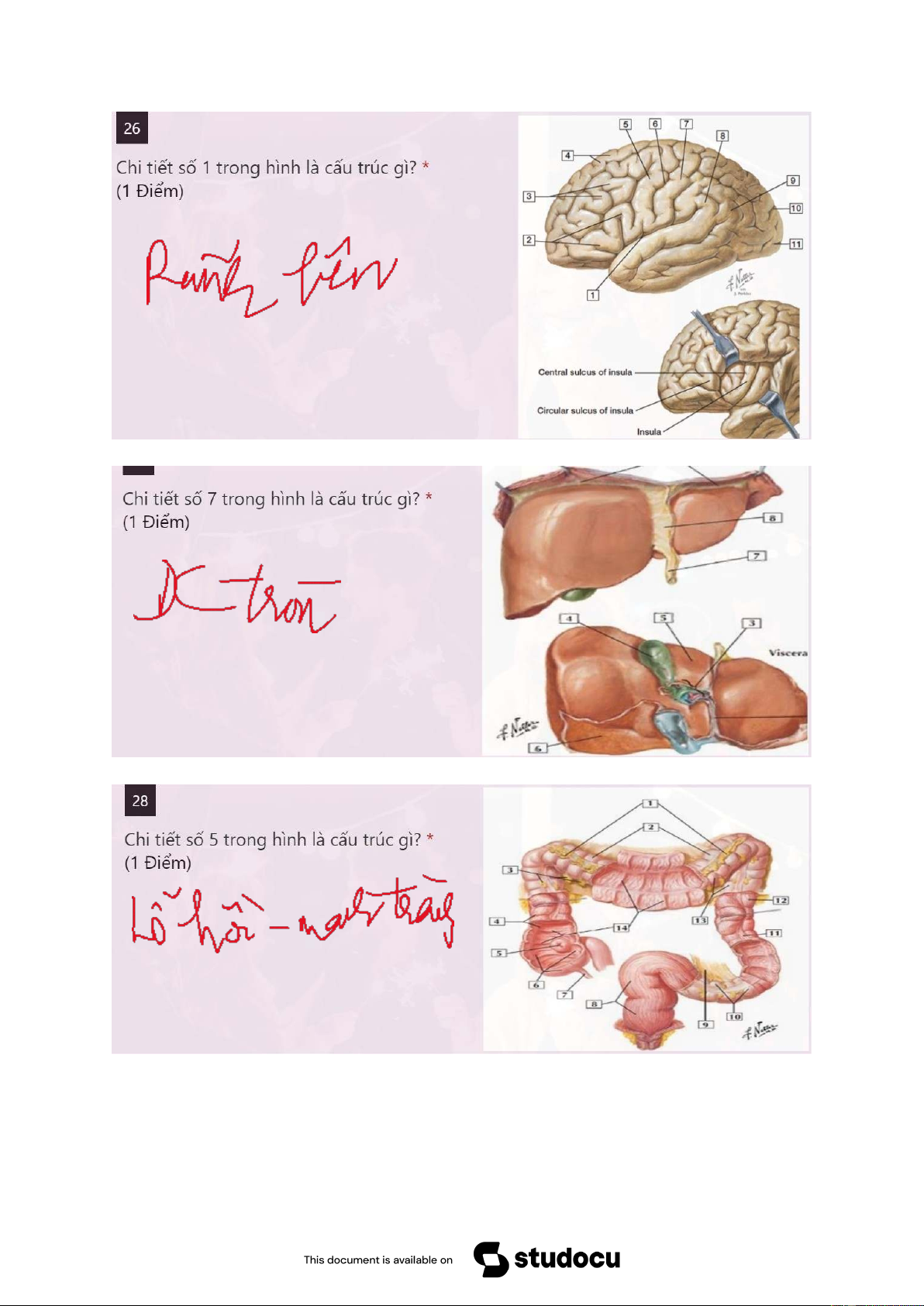 Câu 11: Giải phẫu học làm cơ sở cho môn học nào sau đây: A. Tin học B. Hóa hữu cơ C. Chẩn đoán hình ảnh D. Hóa vô cơ Câu 12: Câu 13: 335 Atlas 240