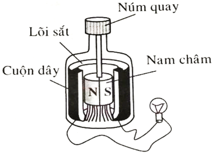 a) Trong đinamô có nam châm vĩnh cửu tạo ra từ trường và cuộn dây tạo ra dòng điện.