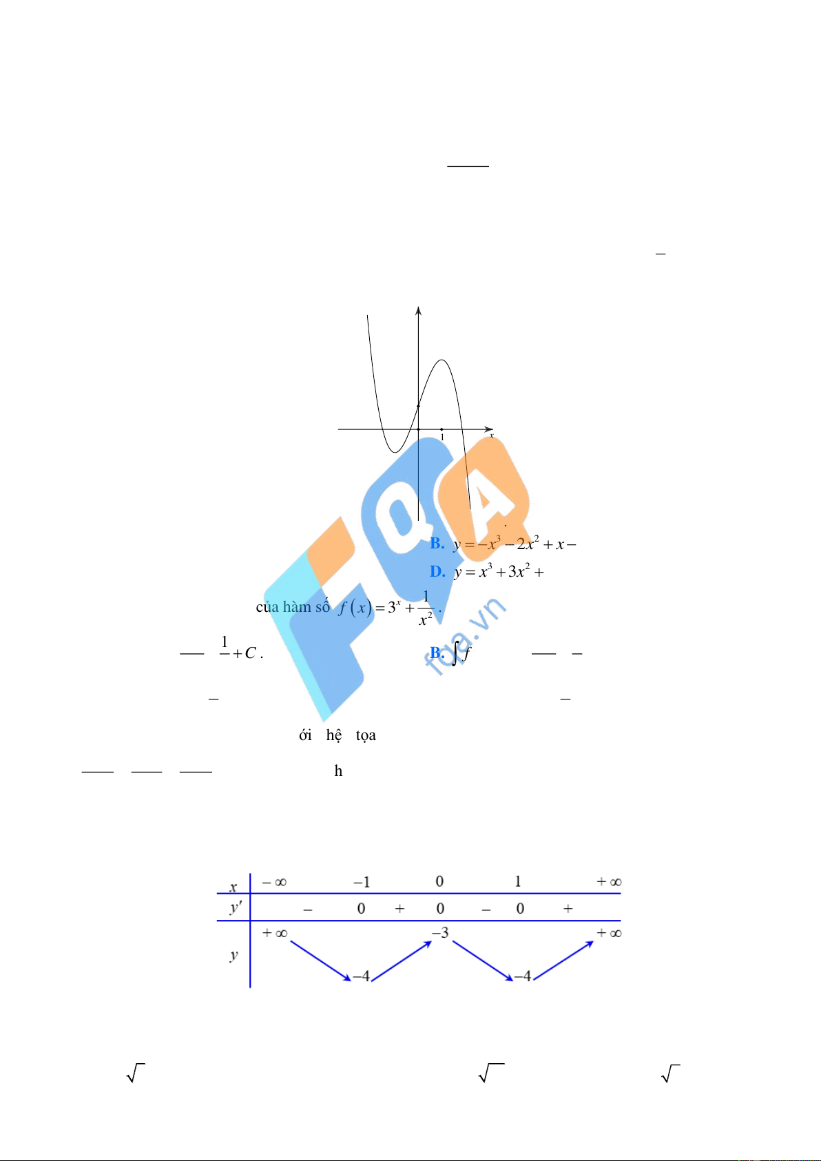 Câu 20: Tìm họ nguyên hàm của hàm số ( ) = 3x f x + . 2 x x x A. f (x) 3 1 dx = − + C . B. f (x) 3 1 dx = + + C . ln 3 x ln 3 x C. ( ) 1 d = 3x f x x − + C . D. ( ) 1 d = 3x f x x + + C . x x