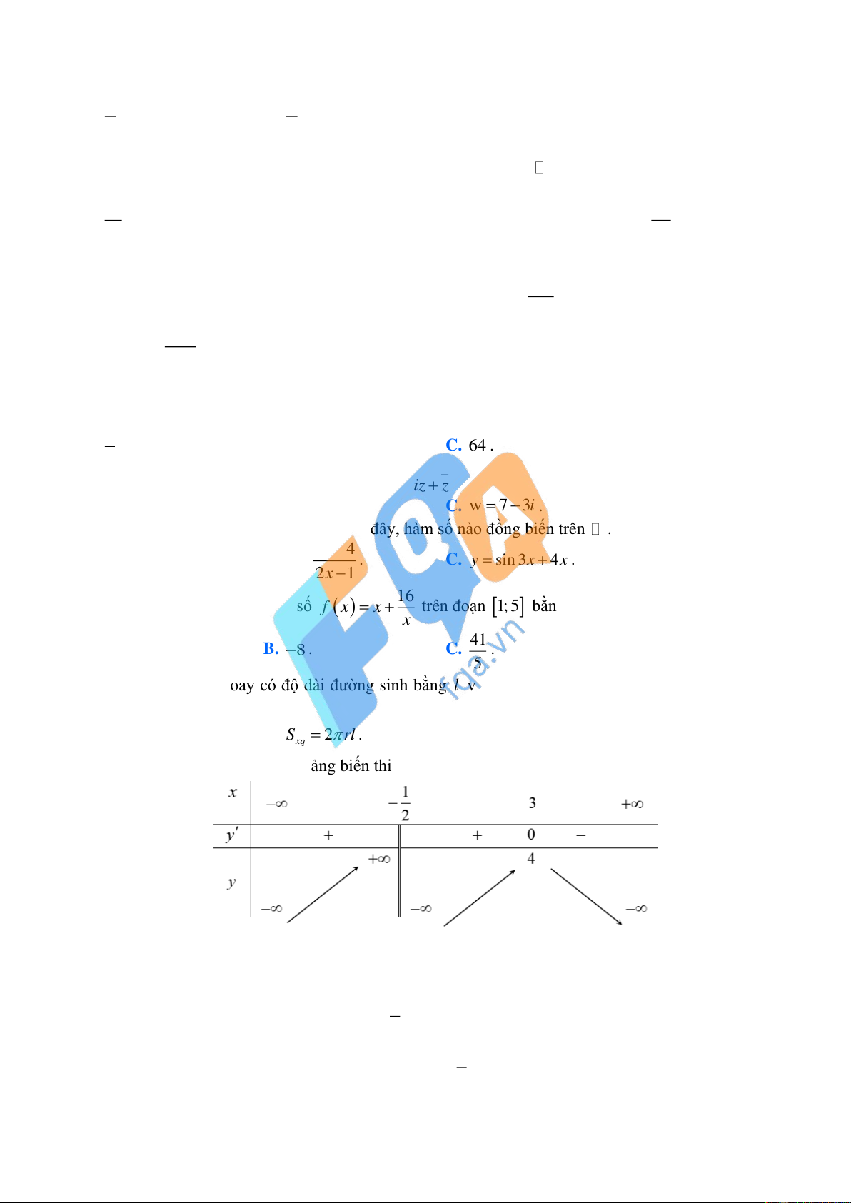 Câu 28: Cho số phức z = 2 + 5i . Tìm số phức w = iz + z A. w = 3 + 7i . B. w = 7 − − 7i .