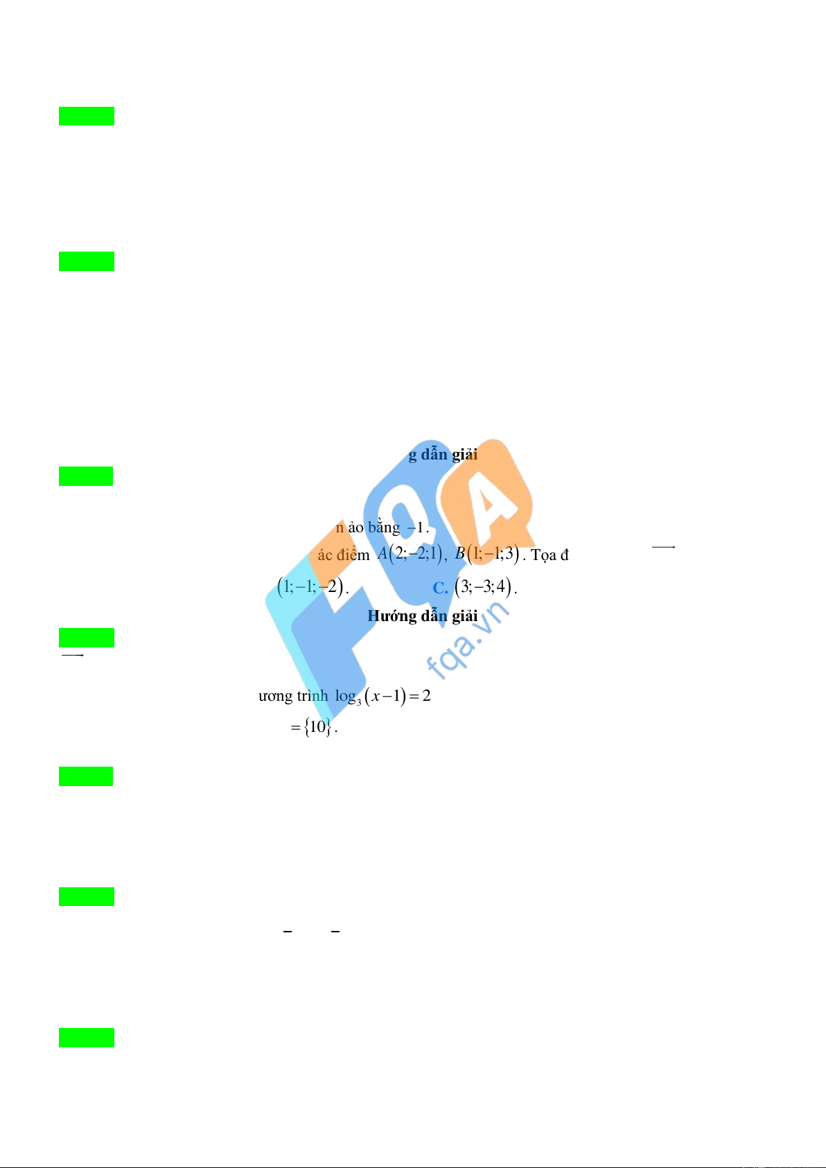 Câu 6: Tập nghiệm S của phương trình log x −1 = 2. 3 ( ) A. S = 6 . B. S = 10 . C. S = 7 . D. S = .