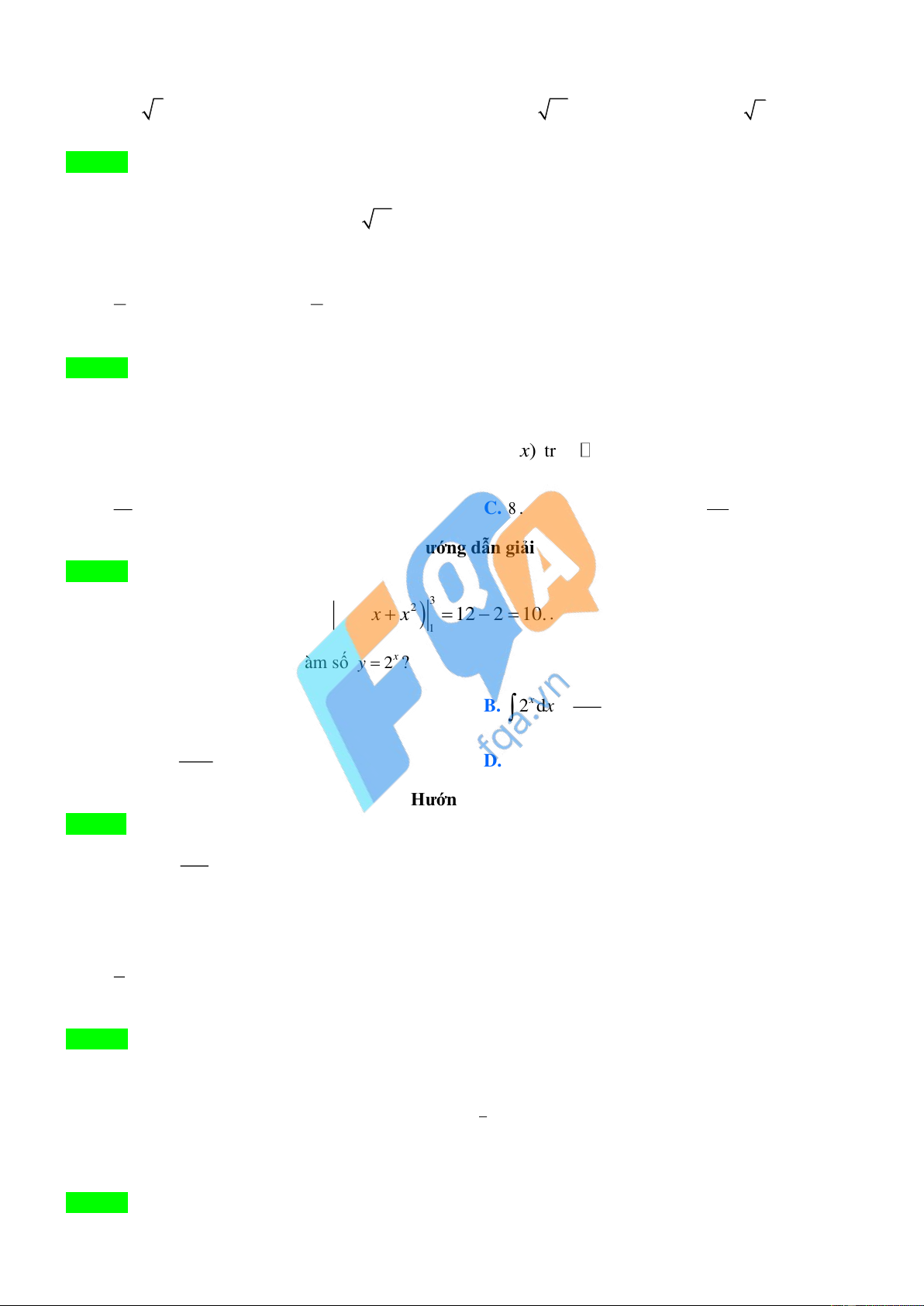 Câu 26: Tìm nguyên hàm của hàm số = 2x y ? x 2x A. 2 d = ln 2.2 + x x x C . B. 2 dx = + C . ln 2 x 2x C. 2 dx = + C . D. 2 d = 2 + x x x C . x +1 5 5 Câu 27: Biết f