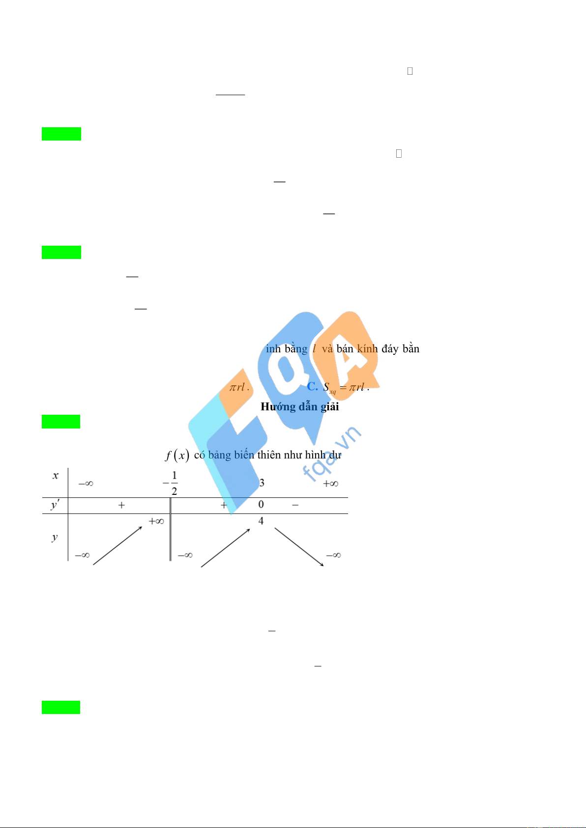 Câu 31: Hình trụ tròn xoay có độ dài đường sinh bằng l và bán kính đáy bằng r có diện tích xung quanh