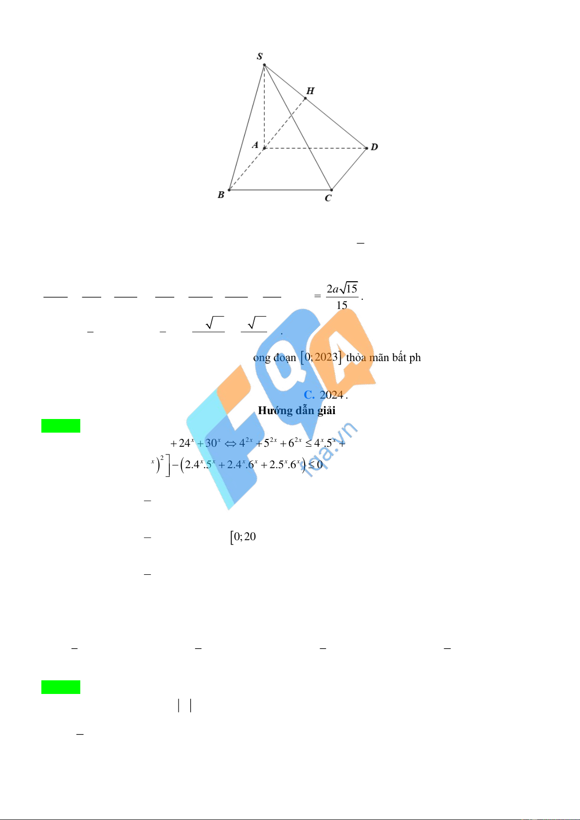 Câu 37: Có bao nhiêu giá trị nguyên của x trong đoạn 0; 2023 thỏa mãn bất phương trình sau 16x 25x 36x 20x 24x 30x + + + + . A. 2023. B. 3 . C. 2024 . D. 1.