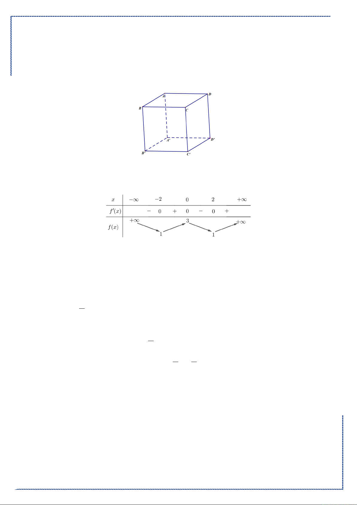 Câu 12. Cho hàm số f x có bảng biến thiên như sau: