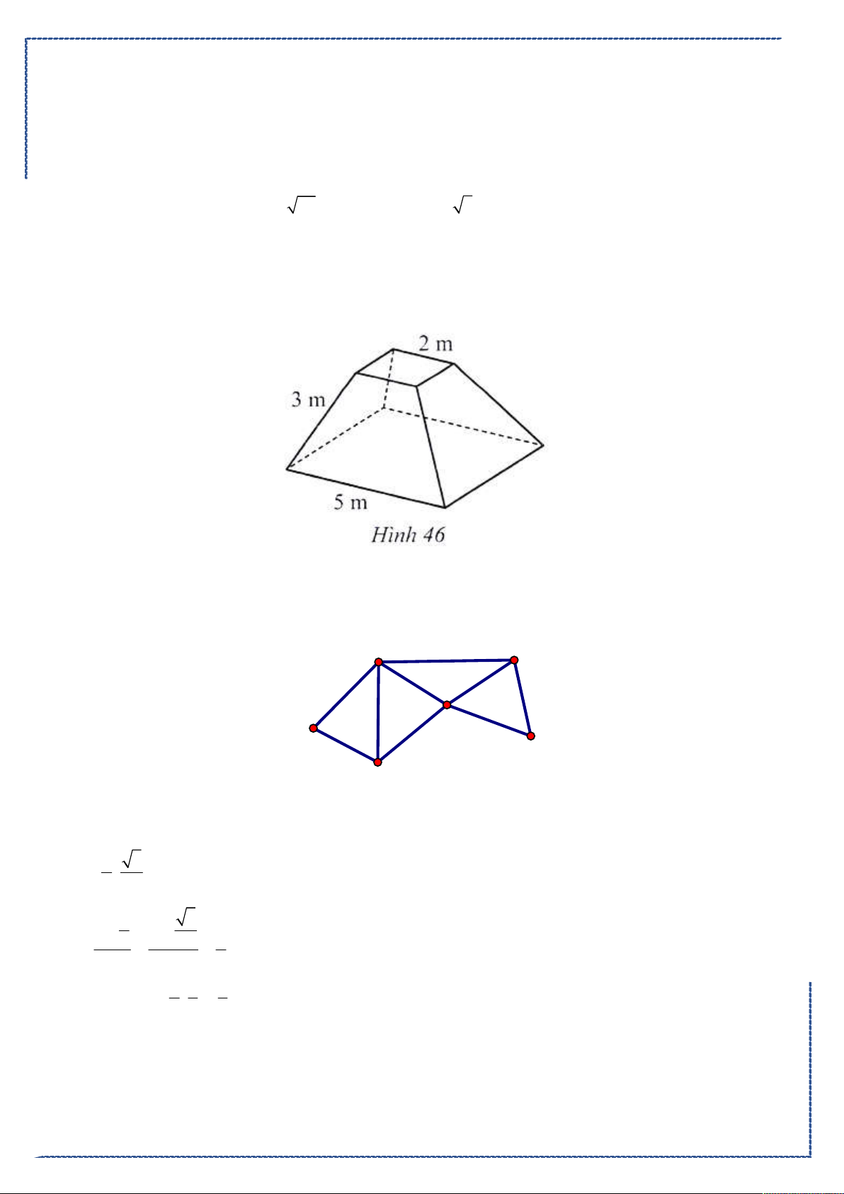 Câu 1. Người ta xây dựng một chân tháp bằng bê tông có dạng khối chóp cựt tứ giác đều (Hình 46).