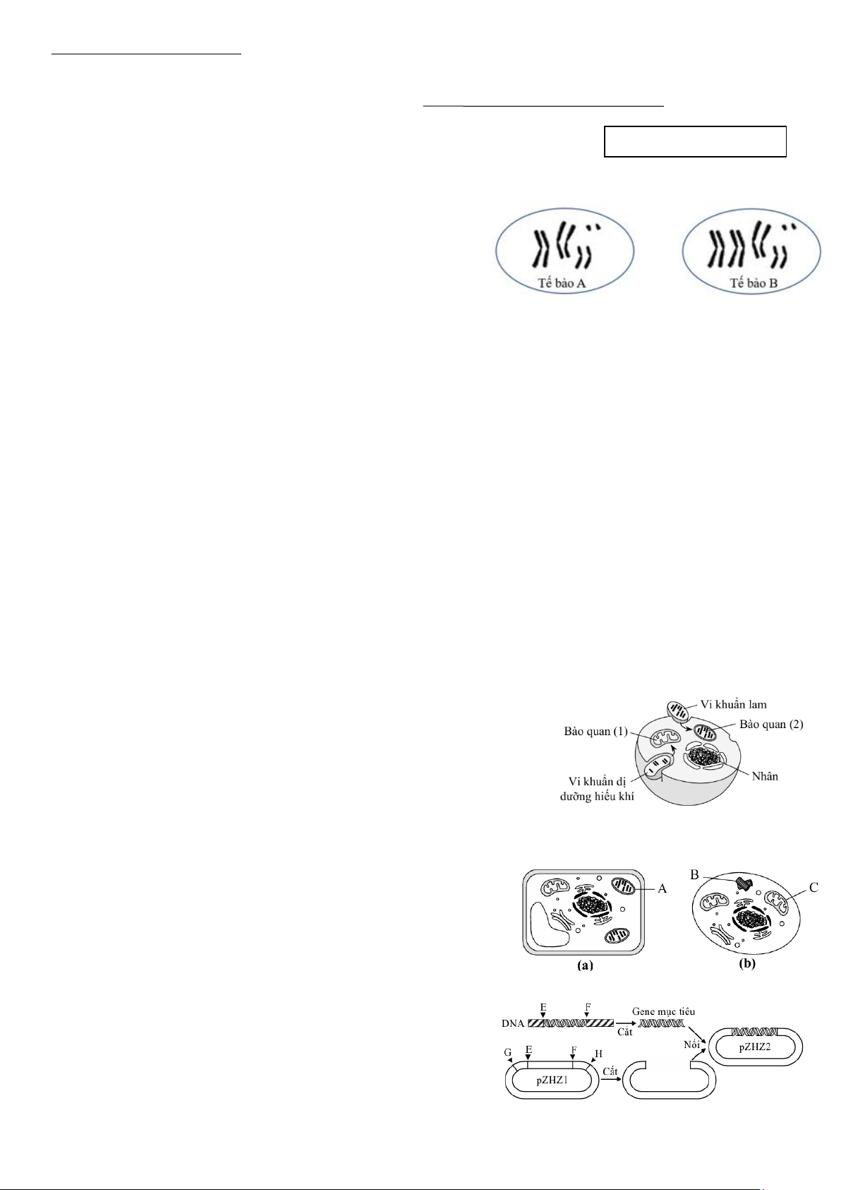 Câu 10: Hình bên mô tả một plasmid pZHZ1 và một đoạn DNA