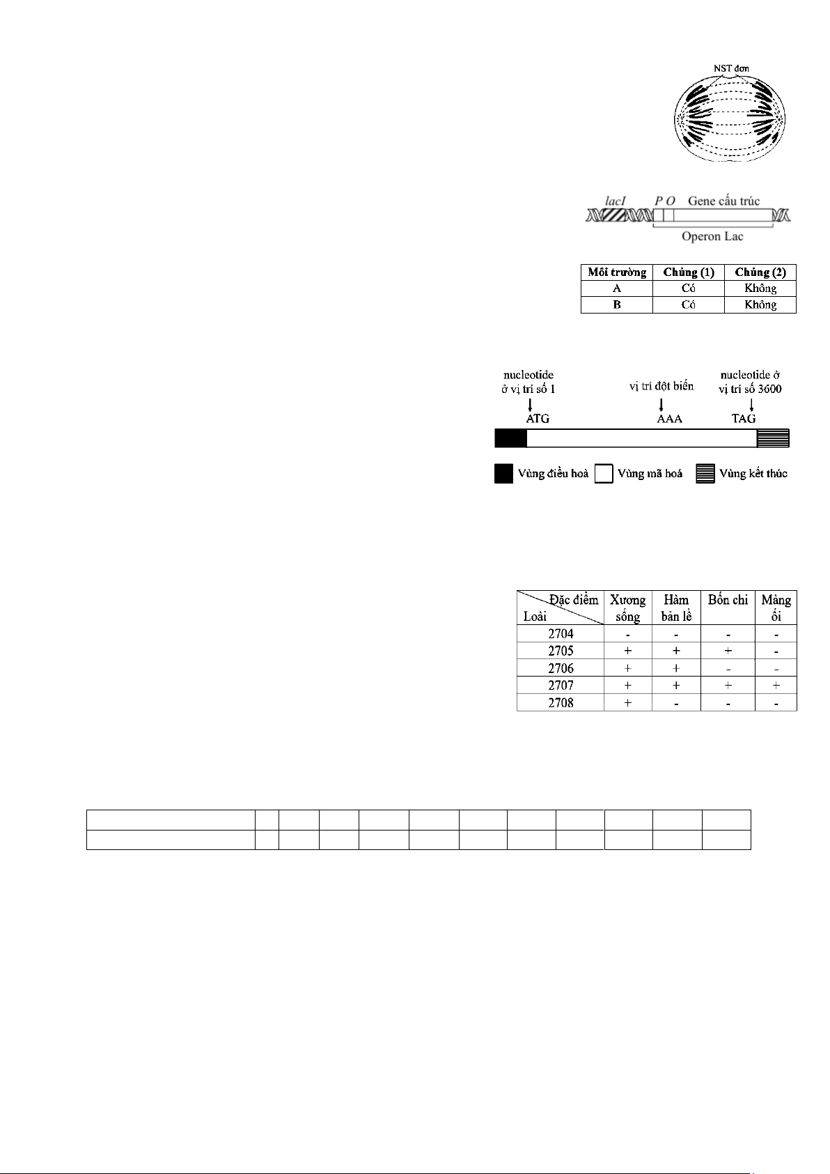 Câu 4: Bảng bên thể hiện sự có (+) hoặc không có (-) một số đặc điểm