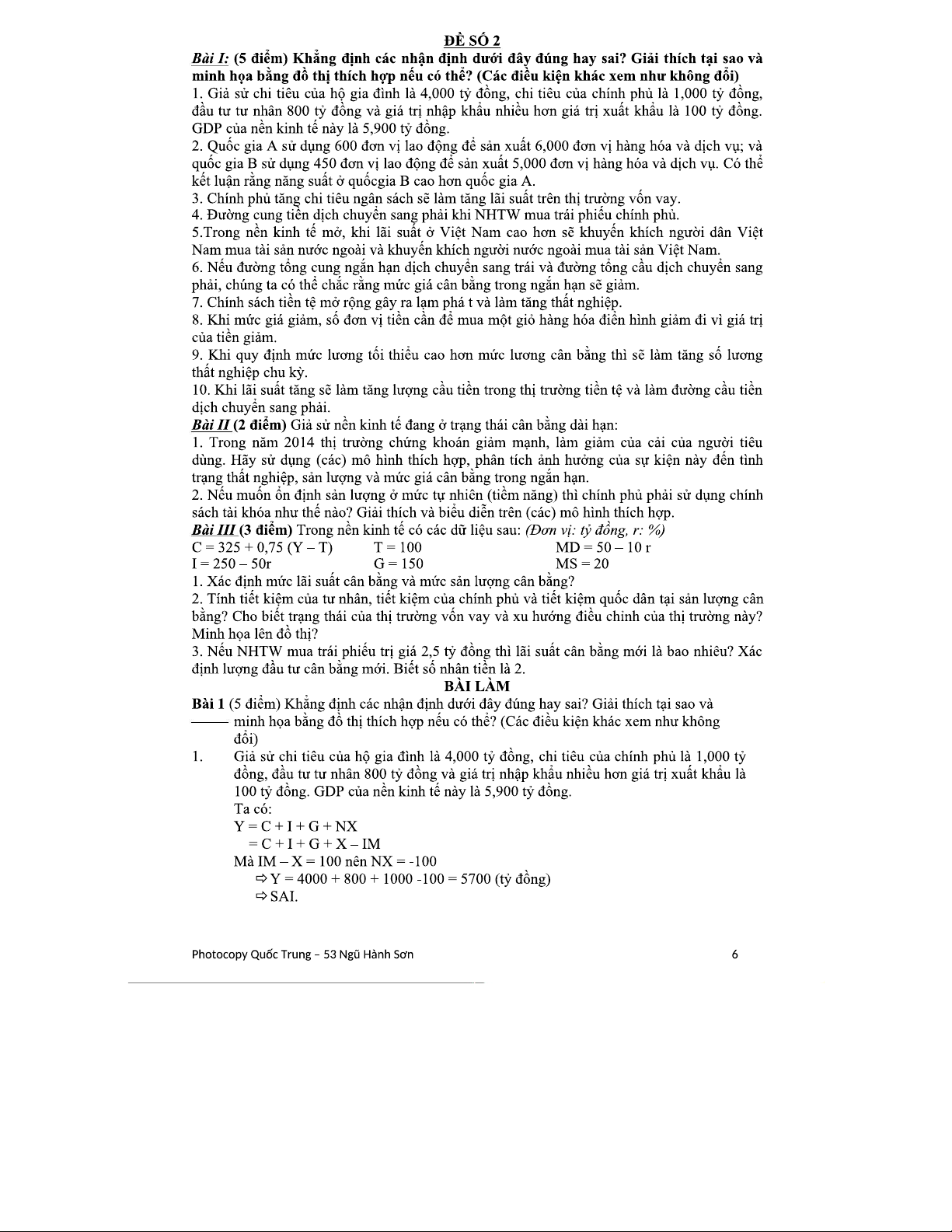 Đề số 1 - 10 Kinh Tế Vĩ Mô Bài Tập Tự Luận Ôn Thi Giữa Cuối Kỳ