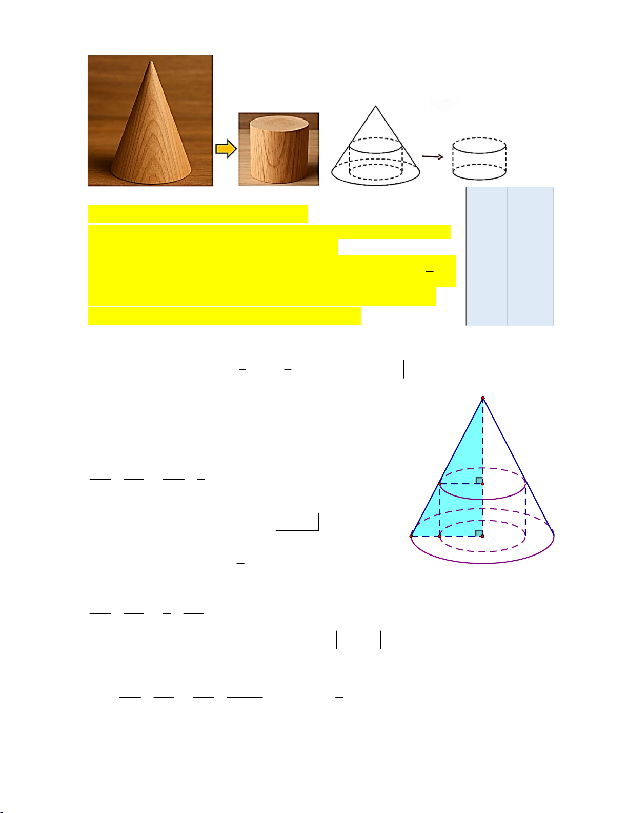Câu 15. Một khối gỗ có dạng khối nón có bán kính đáy r 30 cm , chiều cao h 120 cm . Người thợ mộc tìm