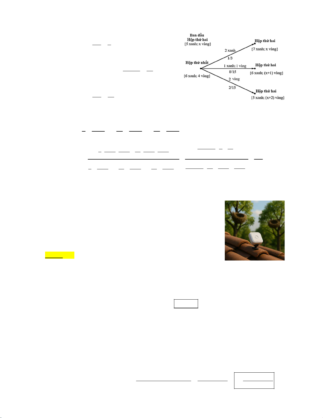 Giả sử ban đầu hộp thứ hai có 5 viên bi xanh và x viên bi vàng * x .