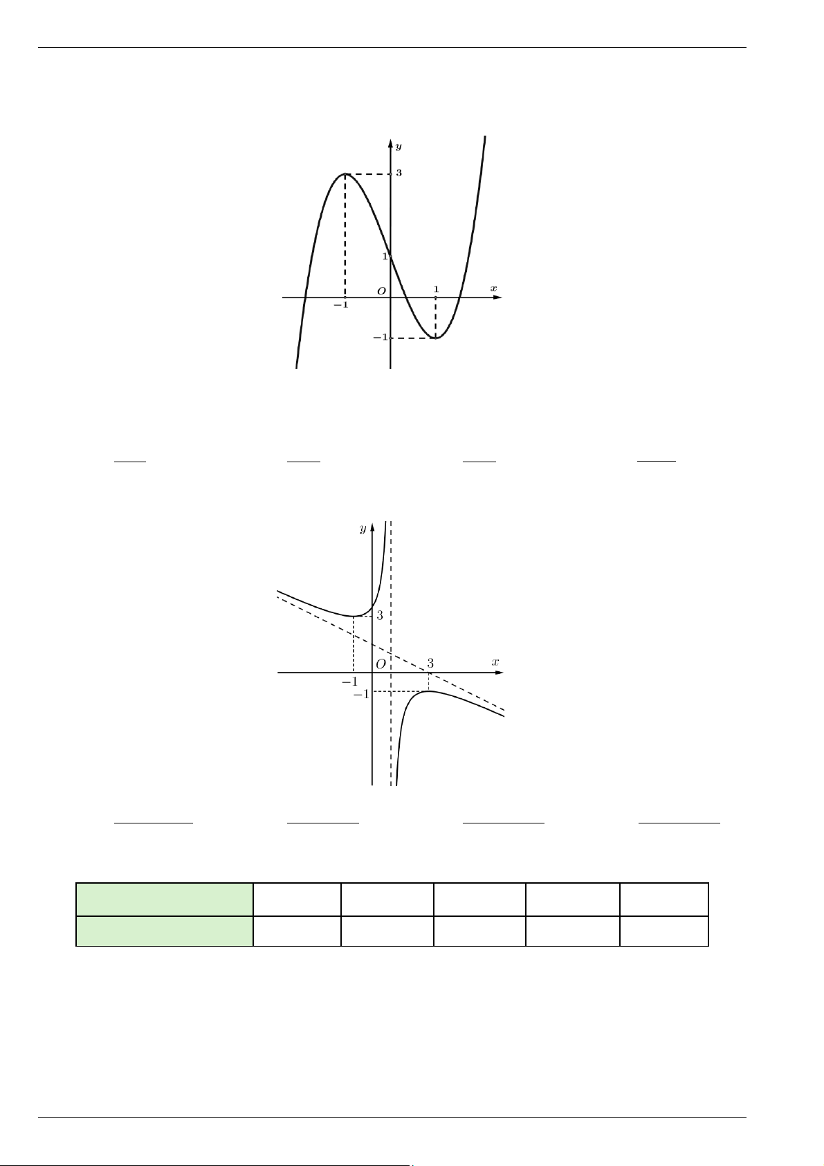 Câu 1. Cho hàm số y = f ( x) có bảng biến thiên như sau: