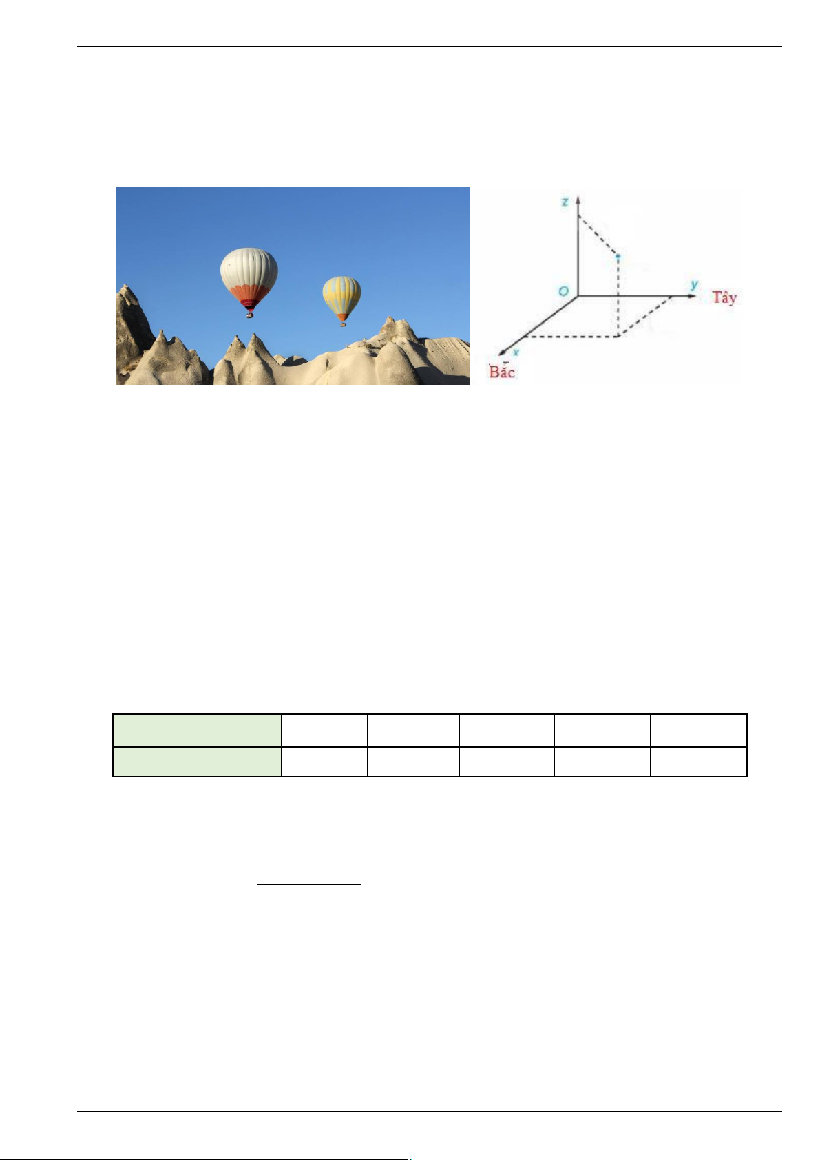 hai chiếc khinh khí cầu, mặt phẳng (Oxy ) trùng với mặt đất, trục Ox hướng về phía Bắc, trục Oy hướng