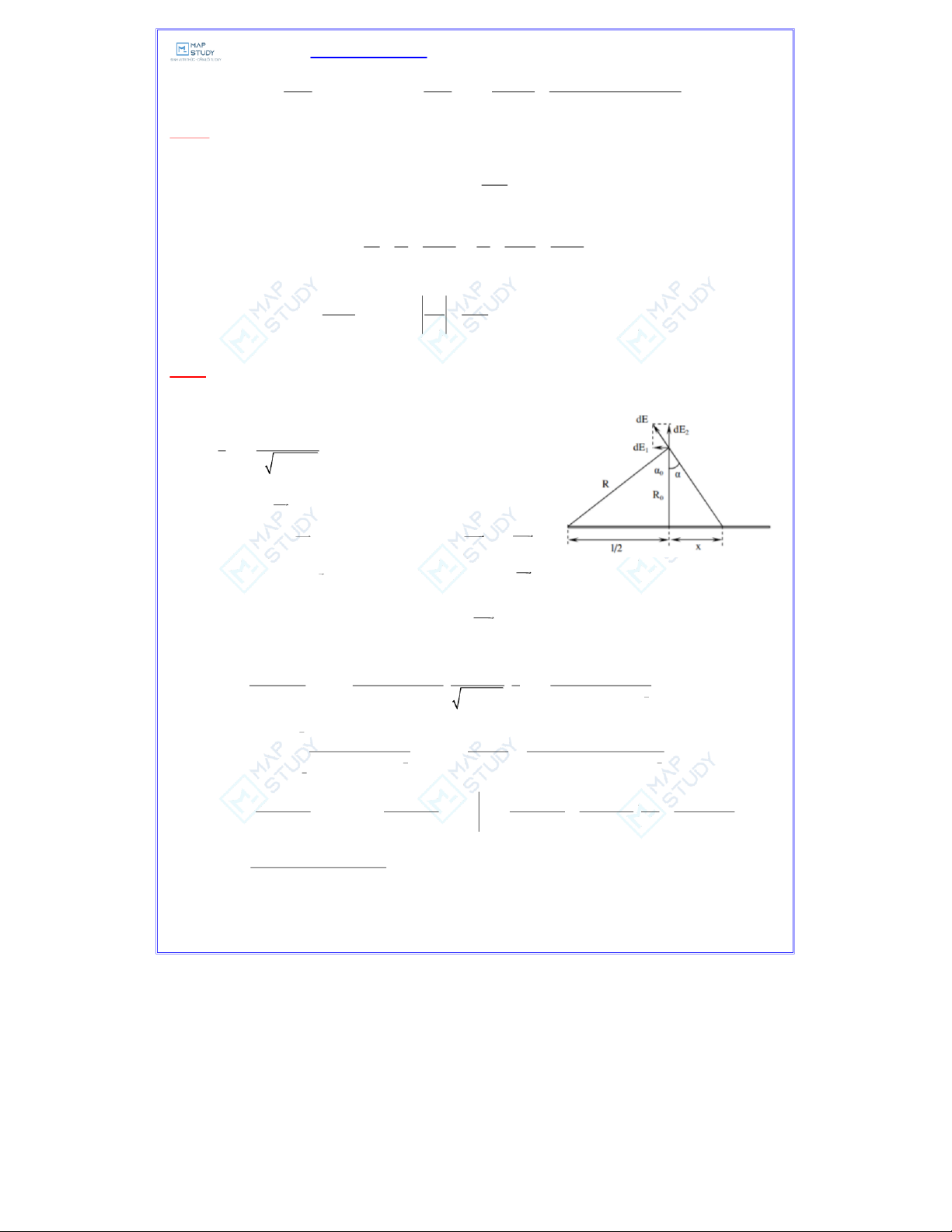 E= dE = dx = dα x33 =− 4πεε l l − 4πεε l R x + cos α R R + tan α 2 0 0( 2) x R tan α 0 2 22 0 α 2 2 2 2 0 0 0 ( ) α 0 α 0 q q 2q qq l E c = osαdα sinα = = = 0 0 0 0 ( ) = 4πεε lR 0 0 −− 4πεε lR 4 ε π ε lR 2πεε lR 2R 4πεε RR 0 0 α00 0 0 α −7 Thay số: 2 10 3 E =