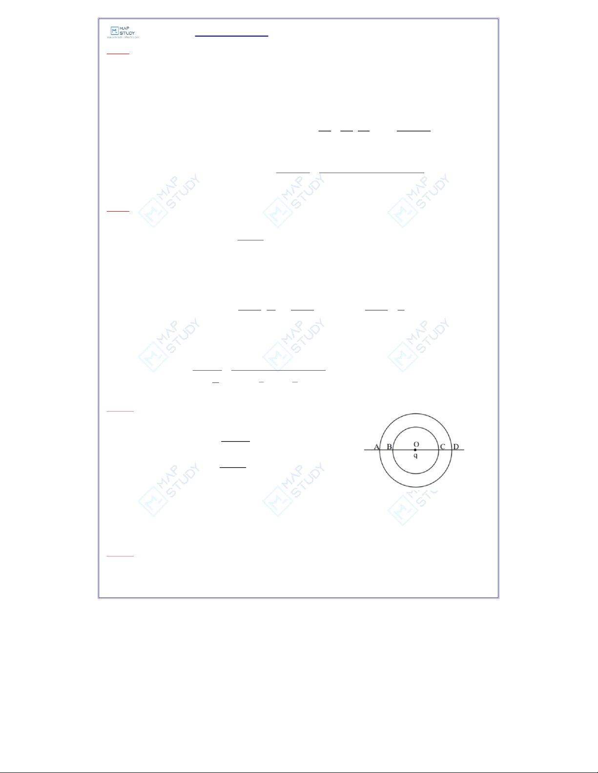 Vậy mật độ điện dài của dây là −12 − 7 2πεε A 2π 1 8,86 10 50 10 0 7 λ = = = 6 10 − ( 2 C )/ m r 2 4 1 −9 q ln 32 10 ln r2 Câu 10: == q V V 4πεε R AD Từ hình vẽ, ta có: 0 == q VV 4πεε r BC 0