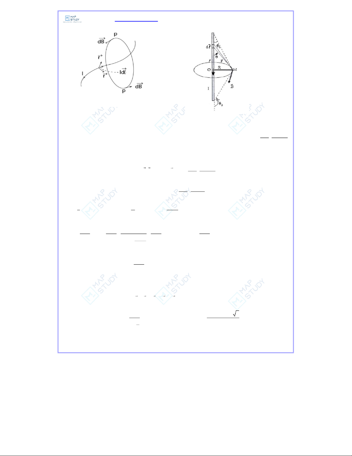 B= dB B = dB = 4πr 2 l l l Ta có lcotθ l Rcotθ r= = và R Rdθ = sinθ d l= 2 rsin θ θ2 Mà a μμ I R dθ sinθ μμ I μμ I 00 r B = = sin = θ dθ 0 B co = sθ (co ) sθ − 2 sinθ 4π 12 2 4π R R 4πa tθ 1 sin θsin 2 θ θ =0=μμ I Dây vô hạn có 10 = B θ 180 2πr 2 2) Bài toán