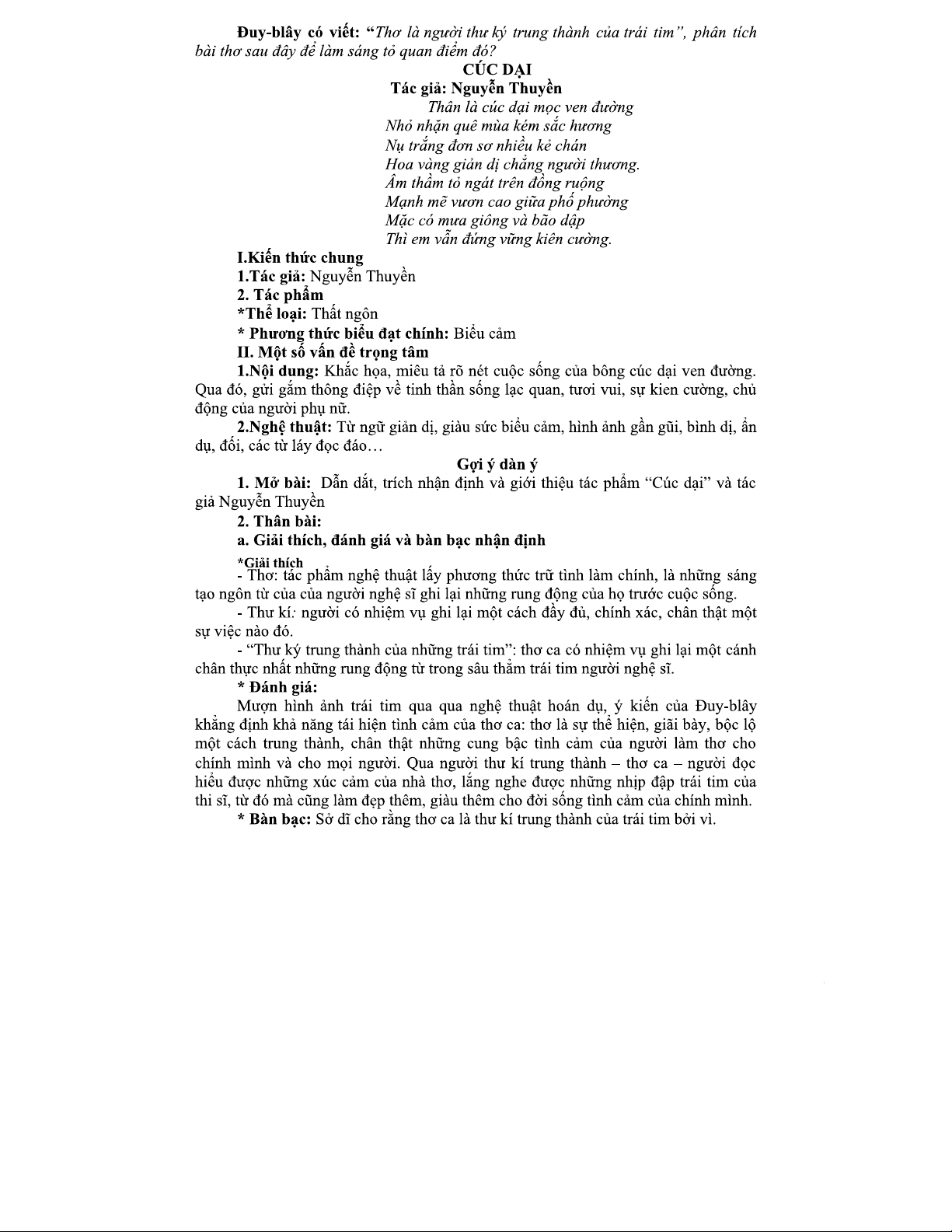 Đề số 3: Phân Tích Nhận Định Về Thơ Nguyễn Thuyền Qua Bài "Cúc Dại"