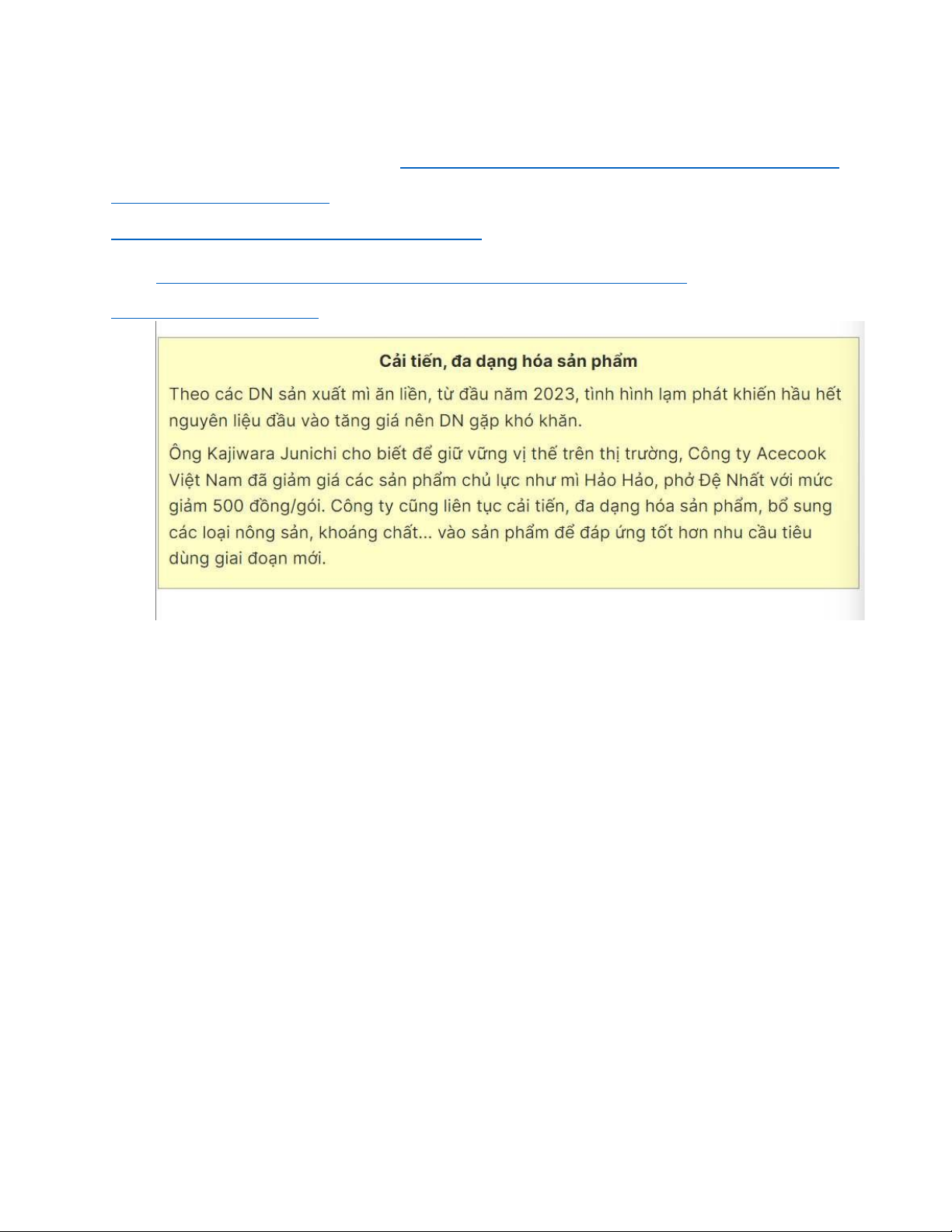 của nước ngoài gây ảnh hưởng khá lớn đến tiêu dùng mì gói ăn liền của Acecook, bên cạnh