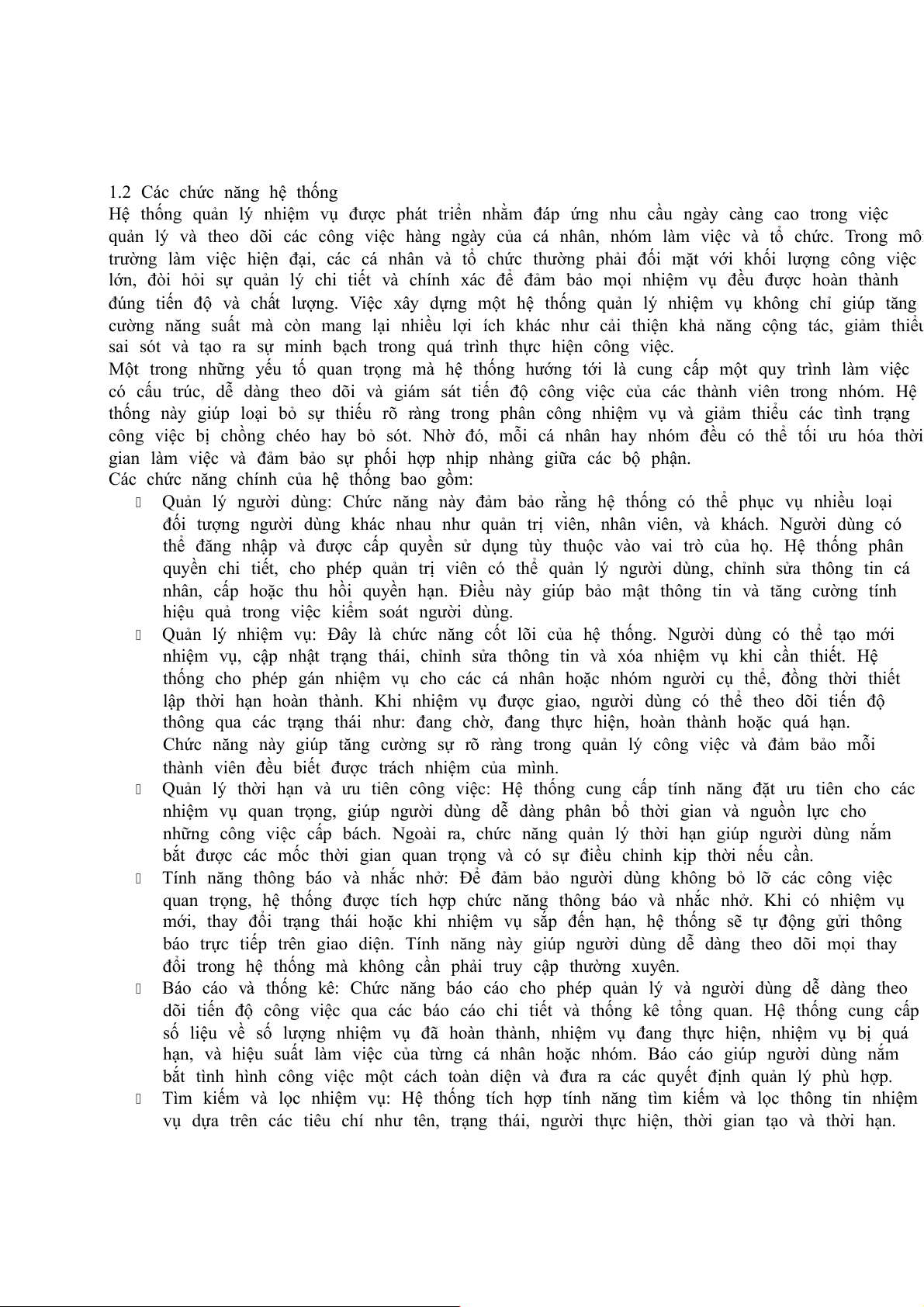 1.2 Các chức năng hệ thống