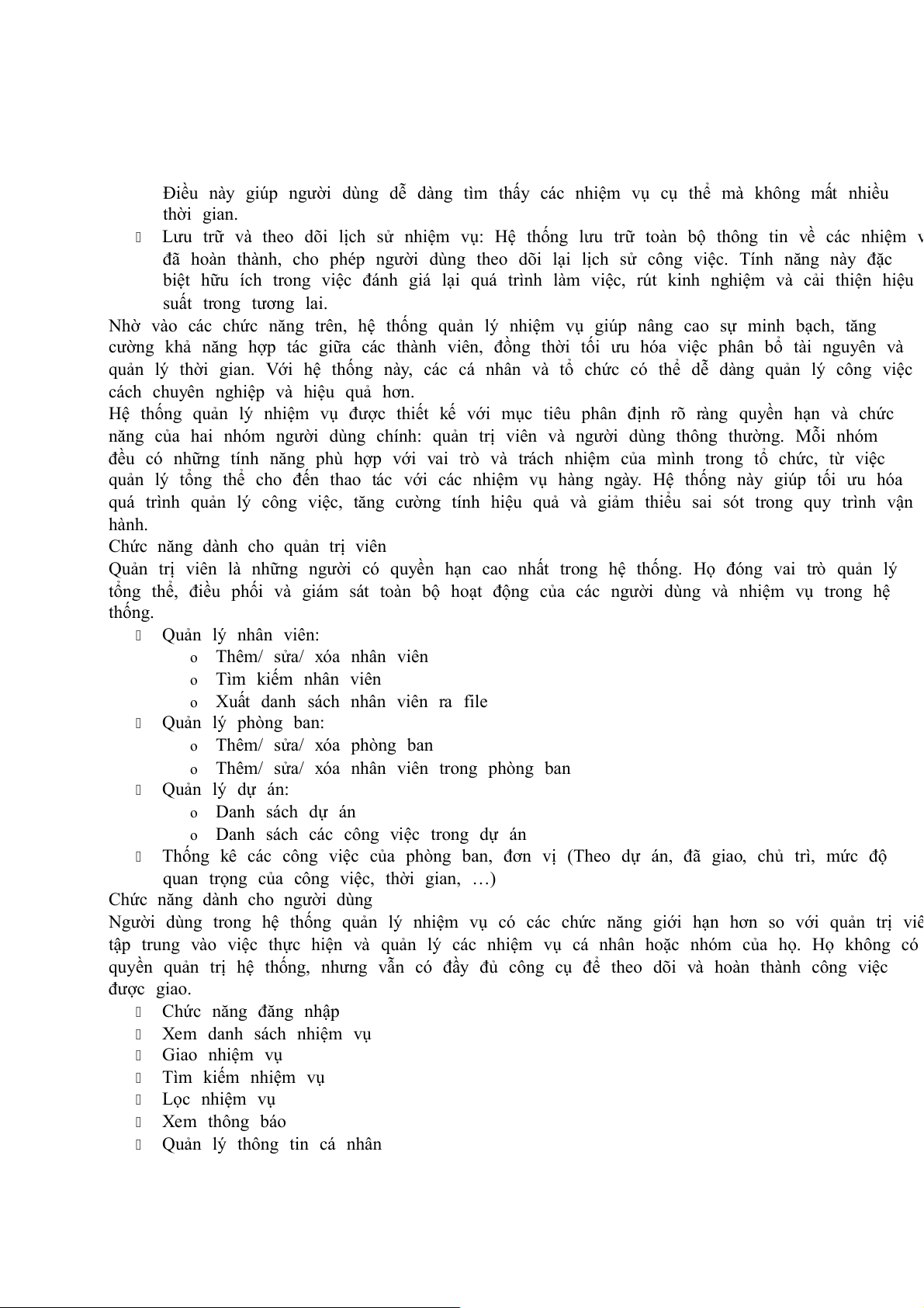 nhiệm vụ, cập nhật trạng thái, chỉnh sửa thông tin và xóa nhiệm vụ khi cần thiết. Hệ