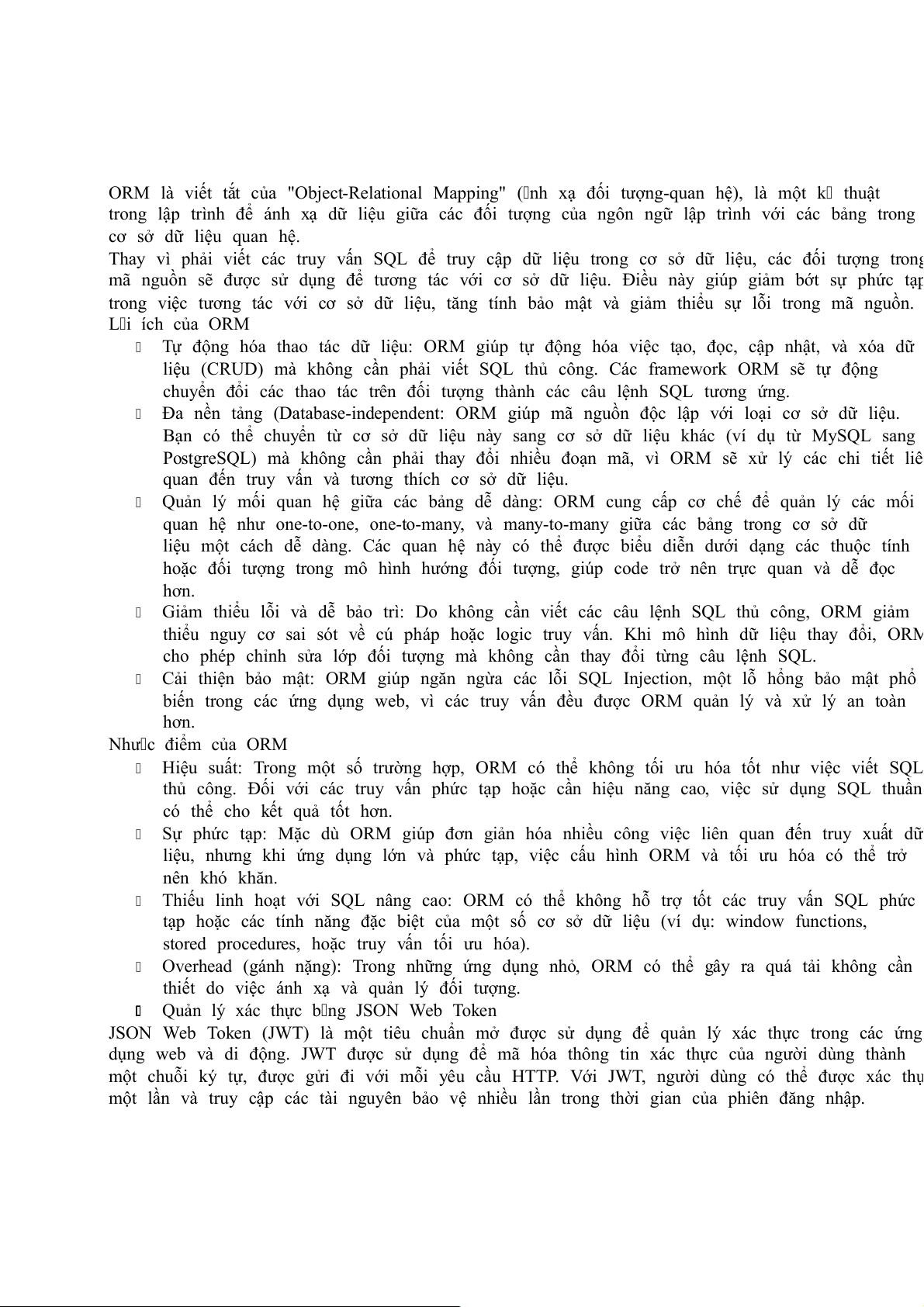 Tóm tắt công việc đã thực hiện. o