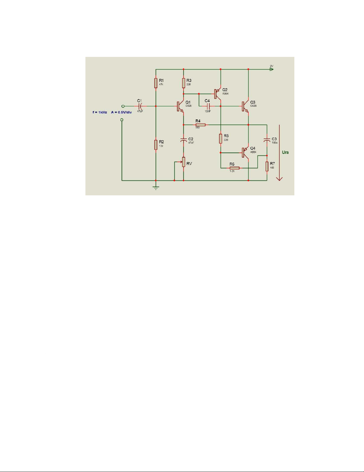 lấy từ dòng Ic của đèn Q1. Cực C được nối với Bazơ đèn Q4 nên UE−đất là