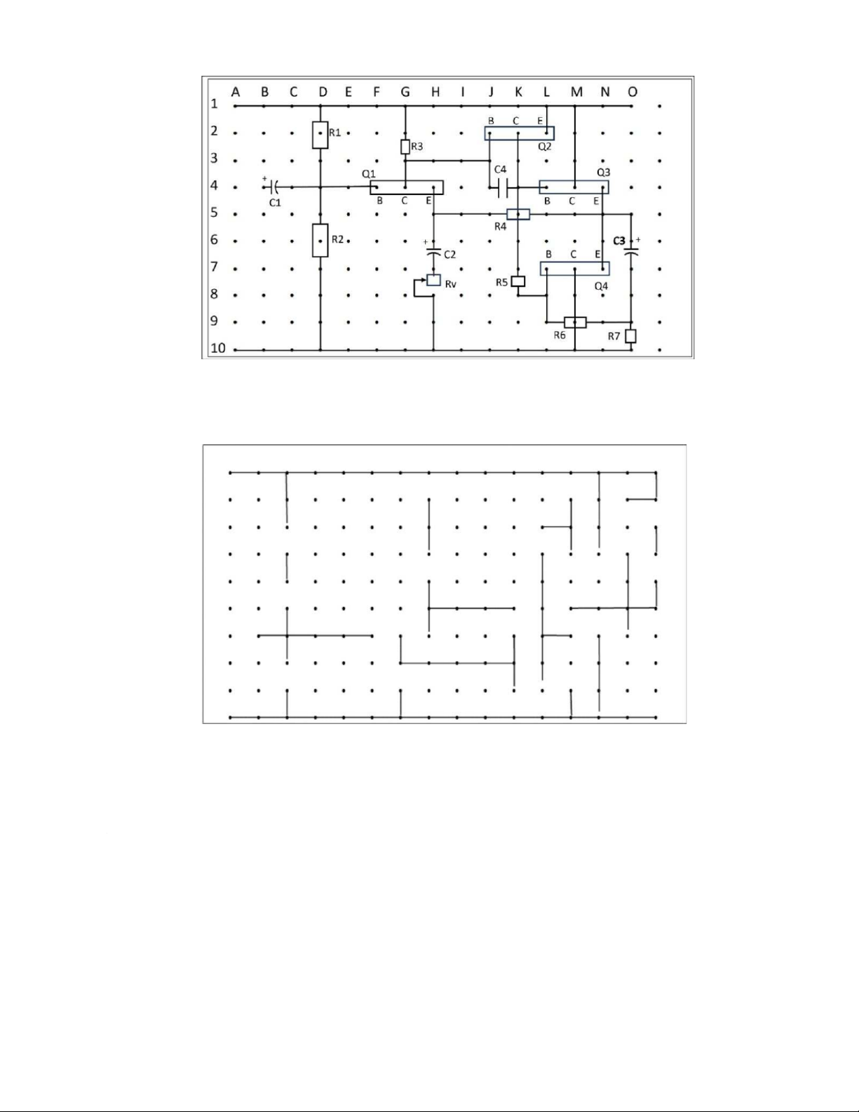 2.2. Linh kiện trong mạch Linh kiện Giá trị Số lượng Điện trở R1 4,7kW 1 Điện trở R2 13kW 1 Điện trở R3, R5 220W 2 Điện trở R4 560W 1 Điện trở R6 1-2kW 1 Điện trở R7 100W 1 Biến trở Rv … 1 Đèn A564 … 2 Đèn C828 … 2 Tụ hóa C1, C2 47µW 2 Tụ hóa C3 100µW 1 Tụ hóa C4 10µW 1 Nguồn 9V 1 3 II.