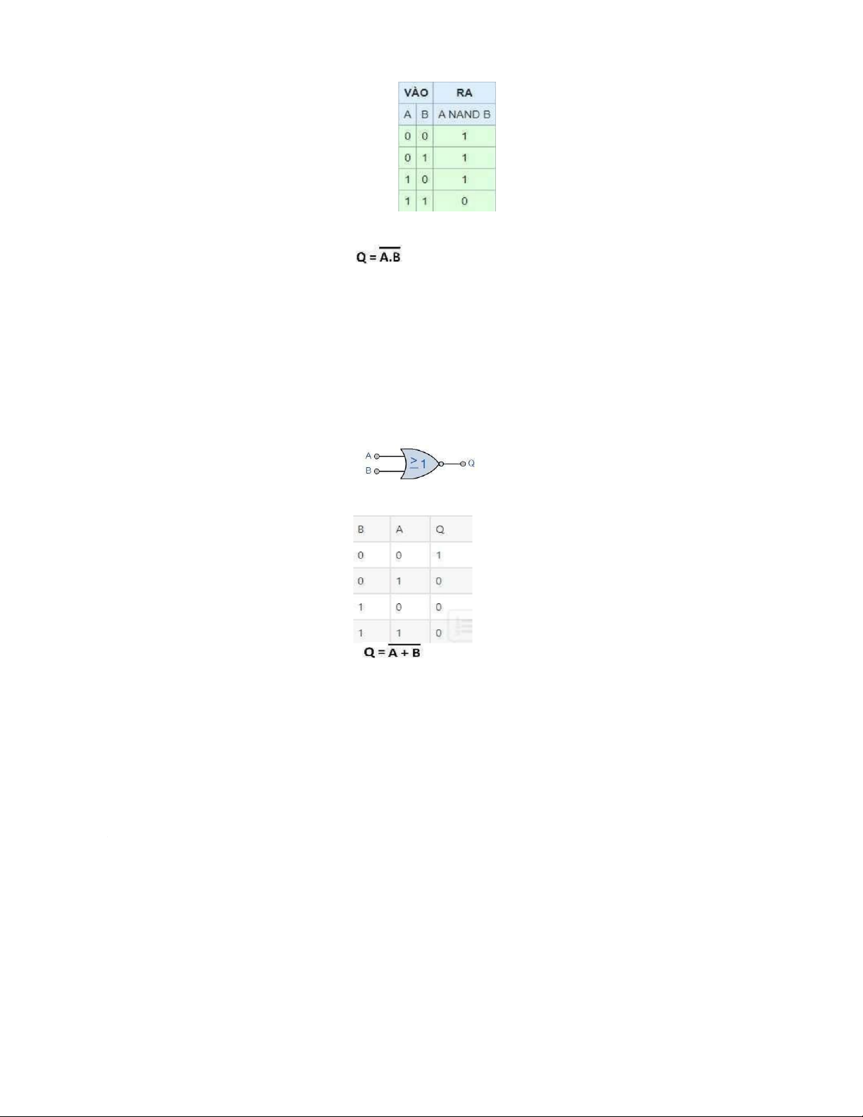 + Ngõ ra cổng NAND = 0 khi tất cả các ngõ vào của nó bằng 1. 2.5 Cổng NOR