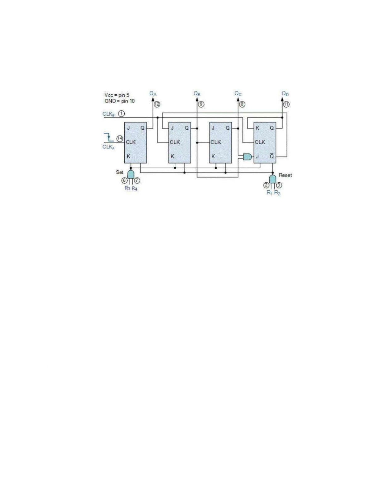 flop JK tạo thành một bộ đếm không đồng bộ được điều khiển bởi đầu vào CLKB.