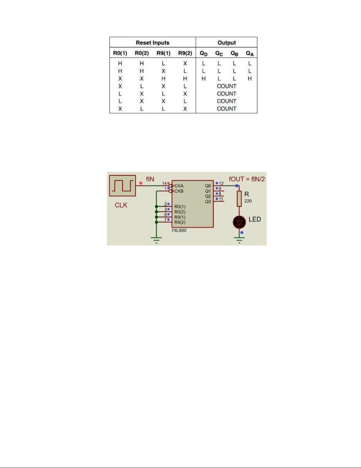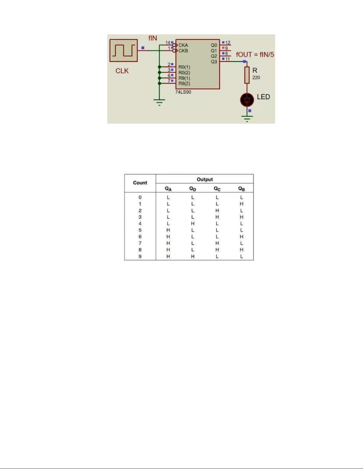 Như đã trình bày ở trên, bên trong IC74LS90 gồm có mạch đếm chia 2 và