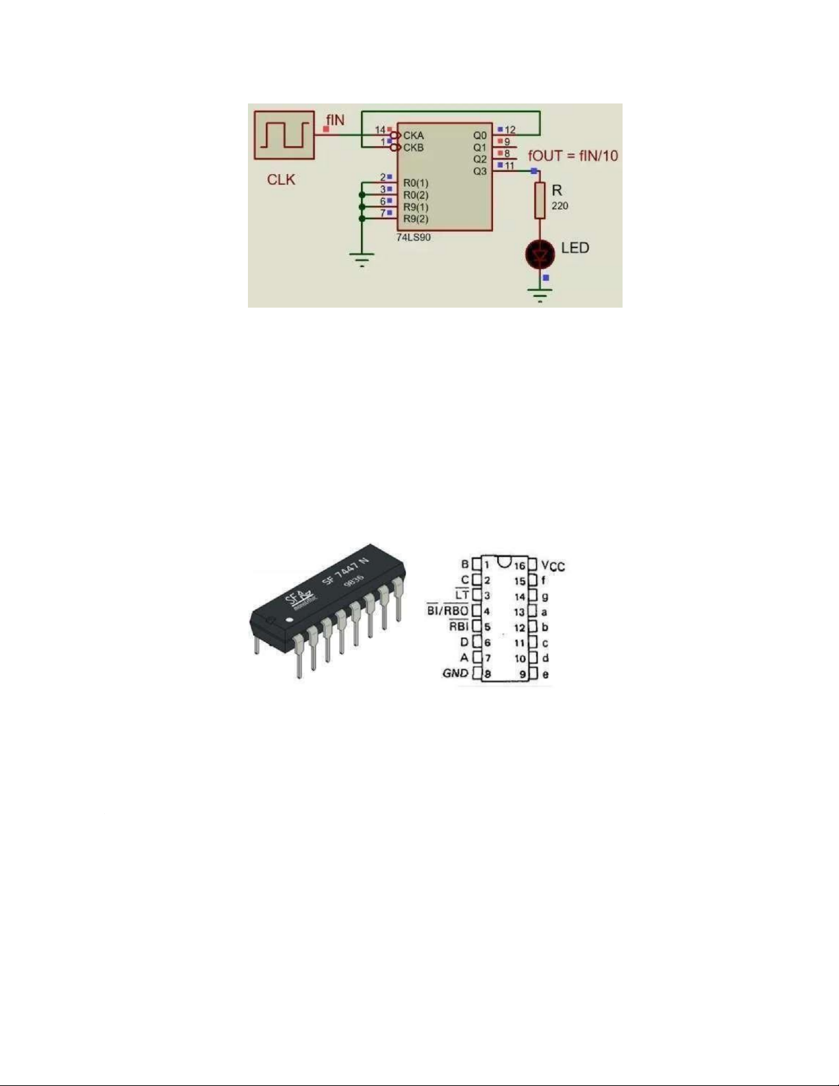 đến 9 sử dụng IC đếm 74LS90 và IC giải mã BCD sang led 7 đoạn 74LS47. Để