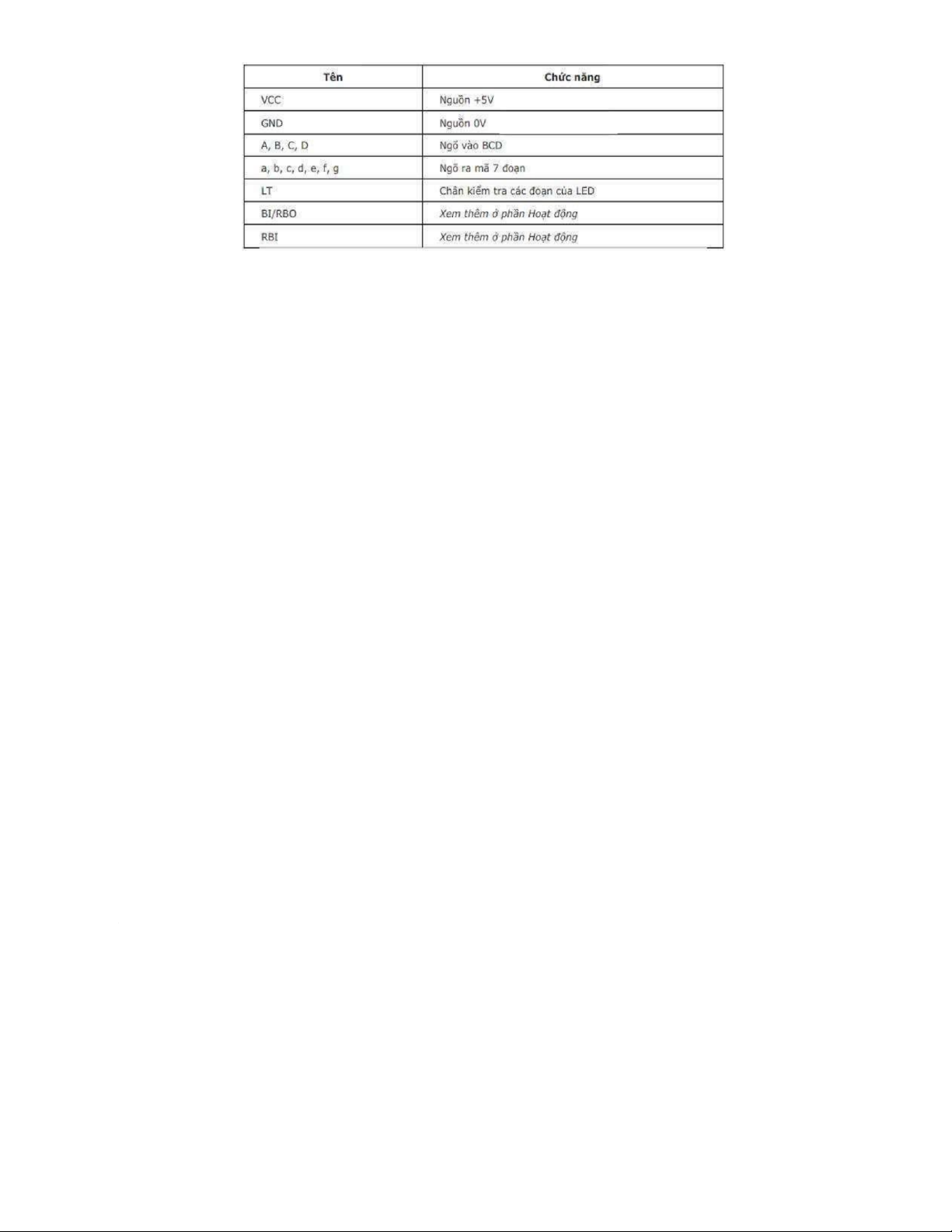 của LED 7 đoạn đều tắt). Chân RBI ở mức thấp và chân BI/RBO phải bỏ trống